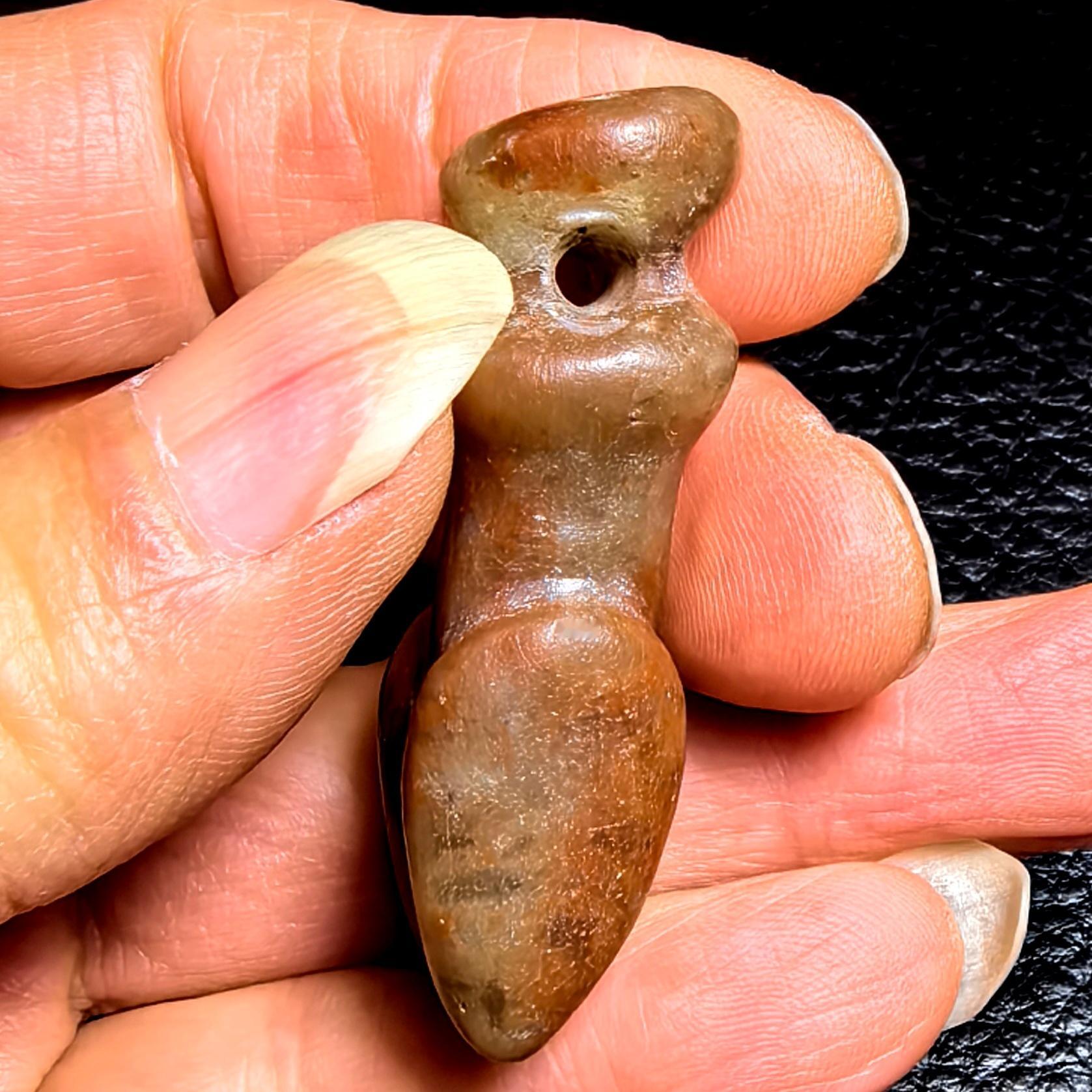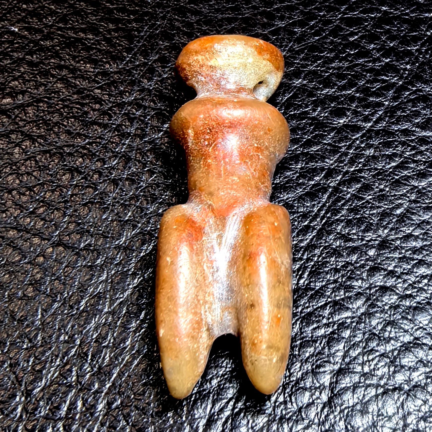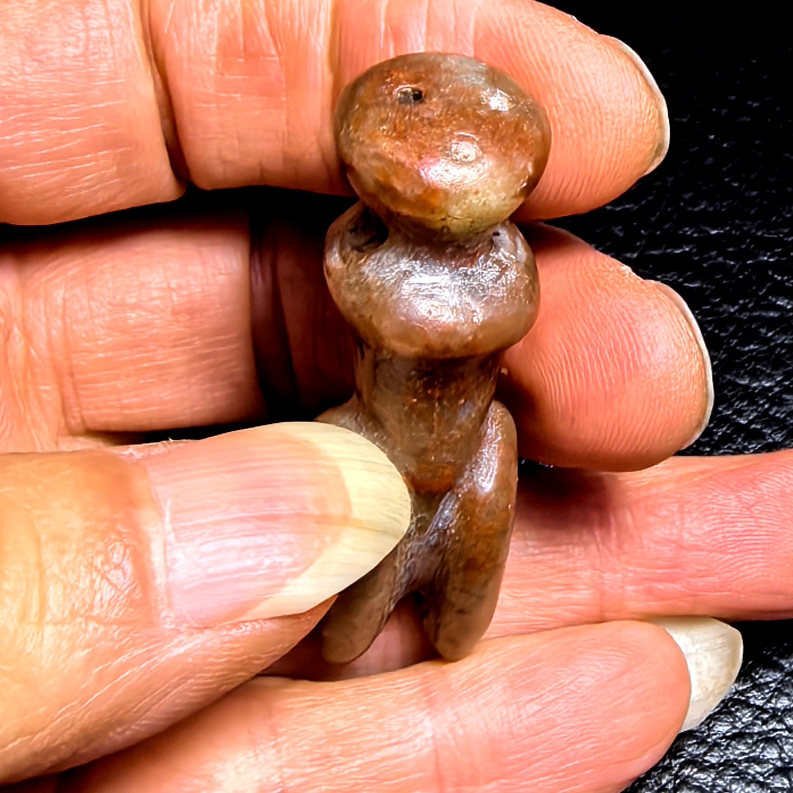 高古玉 红玉器小精品,估计在市面上几乎独一无二,脸部简单简扼要,三个孔,双手拱形,无过多刻划…… 上海