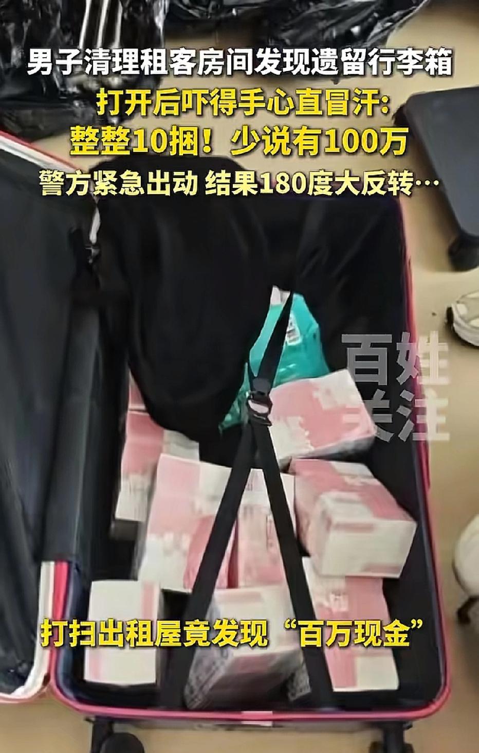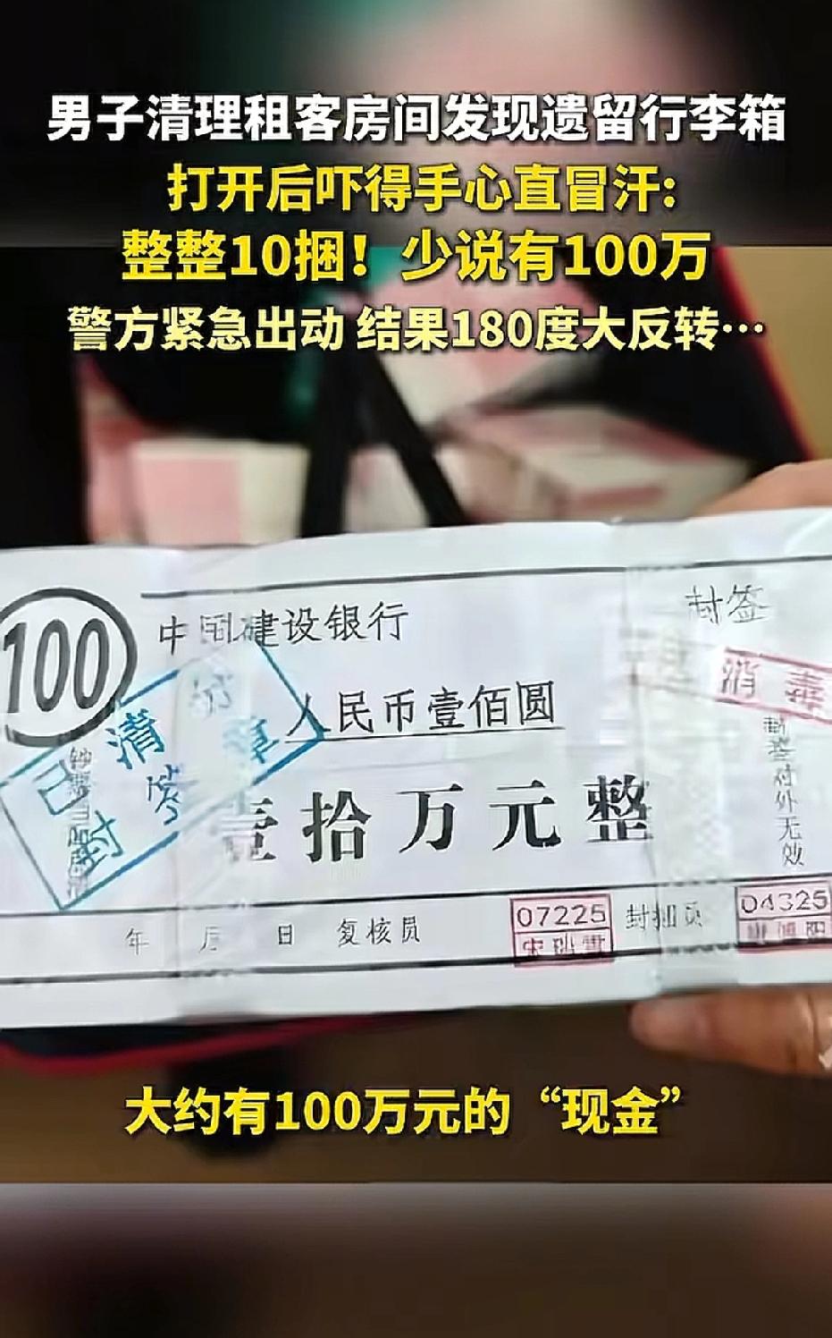 浙江杭州,男子帮朋友打扫房间,发现前租客遗留一个行李箱,里面有10捆现金,大约有100万,上面还印着建行字样,男子吓坏了,生怕前租客干了什么违法的事留下的钱,他立马报警,不料,真相让男子和警察意外。 颜先生受朋友之托,上门帮忙收拾一套刚刚退租的空房间。 本是一次再普通不过的帮忙,谁也没想到,床底一个不起眼的旧行李箱,竟让他瞬间心跳加速、后背发凉,甚至第一时间选择报警。 事发当天,颜先生认真打扫房间角落,房间没有什么贵重物品,但他在床底发现一个前租客遗留的白色行李箱。 他本以为里面是旧衣物或杂物,打开瞬间被惊出一身冷汗。 箱内整齐码放着10捆“现金”,每捆都用印有“中国建设银行”字样的封条捆扎,看起来和银行刚取出的真钞毫无二致,粗略估算足足有100万元。 面对这笔从天而降的巨款,颜先生没有丝毫贪念,他第一反应不是惊喜,而是害怕。 他越想越不对劲:正常人谁会把一百万现金丢在出租屋里?这钱会不会是诈骗、赌博、洗钱来的赃款? 万一自己碰了、拿了、甚至没报警,最后很可能被当成同伙,跳进黄河也洗不清。 越想越慌的颜先生没有丝毫犹豫,立刻掏出手机拨打110,如实说明情况,原地等待警察。 接到报警后,当地派出所民警迅速赶往现场。 起初,民警看到这10捆“钞票”也十分重视,银行封条齐全、捆扎规范,乍看与真币高度相似。 但经验丰富的民警并未掉以轻心,拿起一捆仔细检查,很快发现了破绽: 这些“钞票”手感偏轻,纸质单薄,没有真钞的凹凸感与防伪标识,背面印的拼音并非“RENMIN YINHANG”,而是道具常用的“QUAN”。 结合房间内遗留的古装戏服、拍摄支架、补光灯等设备,民警心中已有答案。 经过核查,真相终于水落石出。 前租客并非涉案人员,而是一名短视频博主,这箱“百万巨款”只是网购的影视拍摄道具,每套价格仅几十元,因搬家匆忙遗忘在房间。 得知真相的颜先生长舒一口气,悬在心里的大石头终于落地。 他坦言,自己当时完全不敢多想,只知道来路不明的巨额财物绝不能碰,报警是唯一正确的选择。 民警当场对颜先生拾金不昧、主动报警的行为予以肯定,并告知道具币虽非假币,但严禁用于流通、诈骗,否则同样要承担法律责任。 目前,这批道具币已交由房东妥善保管,将尽快归还给前租客。 此事一经传开,立刻引来大批网友热议。 有人夸颜先生清醒又正直:“一百万摆在面前都不动心,第一反应是报警,这人品太稳了。” “换别人说不定就偷偷拿走了,他是真的懂法、怕犯法。” 也有网友表示后怕:“看着跟真钱一模一样,谁敢随便处理?不报警真的会出事。” “幸好没贪,不然以为捡了钱,结果可能直接犯法。” 还有不少人关心:这种道具币能不能用、能不能扔? 《刑法》第172条规定,明知是伪造货币而持有、使用,总面额4000元以上即构成犯罪,可处三年以下有期徒刑或者拘役,并处一万元以上十万元以下罚金。 影视道具币虽非假币,但外观高度仿真,法律明确划定红线:严禁用于市场流通,严禁随意丢弃,违者将依法追责。 《人民币管理条例》相关规定,人民币图样受法律保护,仿制人民币的道具币不得随意丢弃、遗弃。 随意丢弃可能导致道具币流入社会、混淆公众、扰乱金融秩序,持有者、丢弃者需承担相应法律责任。 《民法典》第314条规定,拾得遗失物应当返还权利人,或送交公安等部门。 颜先生发现可疑财物后立即报警,完全符合法律规定,既规避风险,也履行了公民义务。 此事也告诉大家,路上捡到钱、屋里发现巨款,别心动,先报警。 面对仿真度极高的道具币,记住一句话:不使用、不流通、不随意丢弃,否则就是违法。