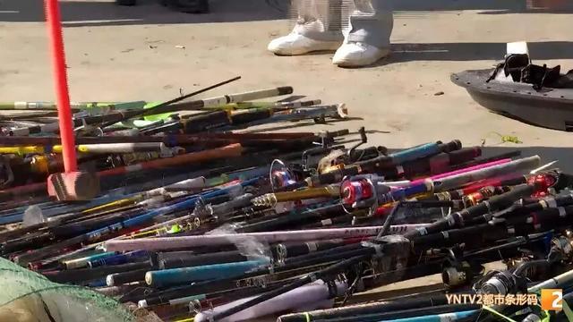 昆明市滇池管理局渔业和海事处处长代阳:“今天共销毁鱼竿600余根,渔网具400余张,偷捕工具含操舟机、筏子、轮胎等31艘。利用这个活动我们销毁一批、震慑一批,希望广大的市民群众遵守好十年禁渔的管理规定,保护好滇池的生态安全。”