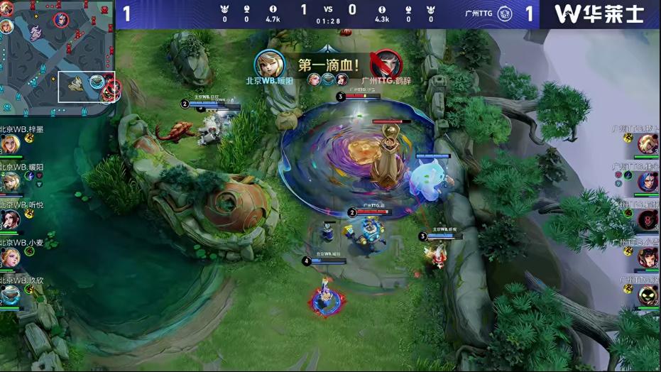 两分钟不到WB集结四人下路越塔,暖阳阿古朵收下鹤辞西施一血