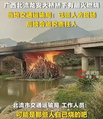 最近,广西某地有人拍到一个视频,有人在某地的大桥下明火烧桥面,随后举报到当地交通