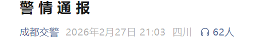 27日晚间,成都市公安局交通管理局发布警情通: