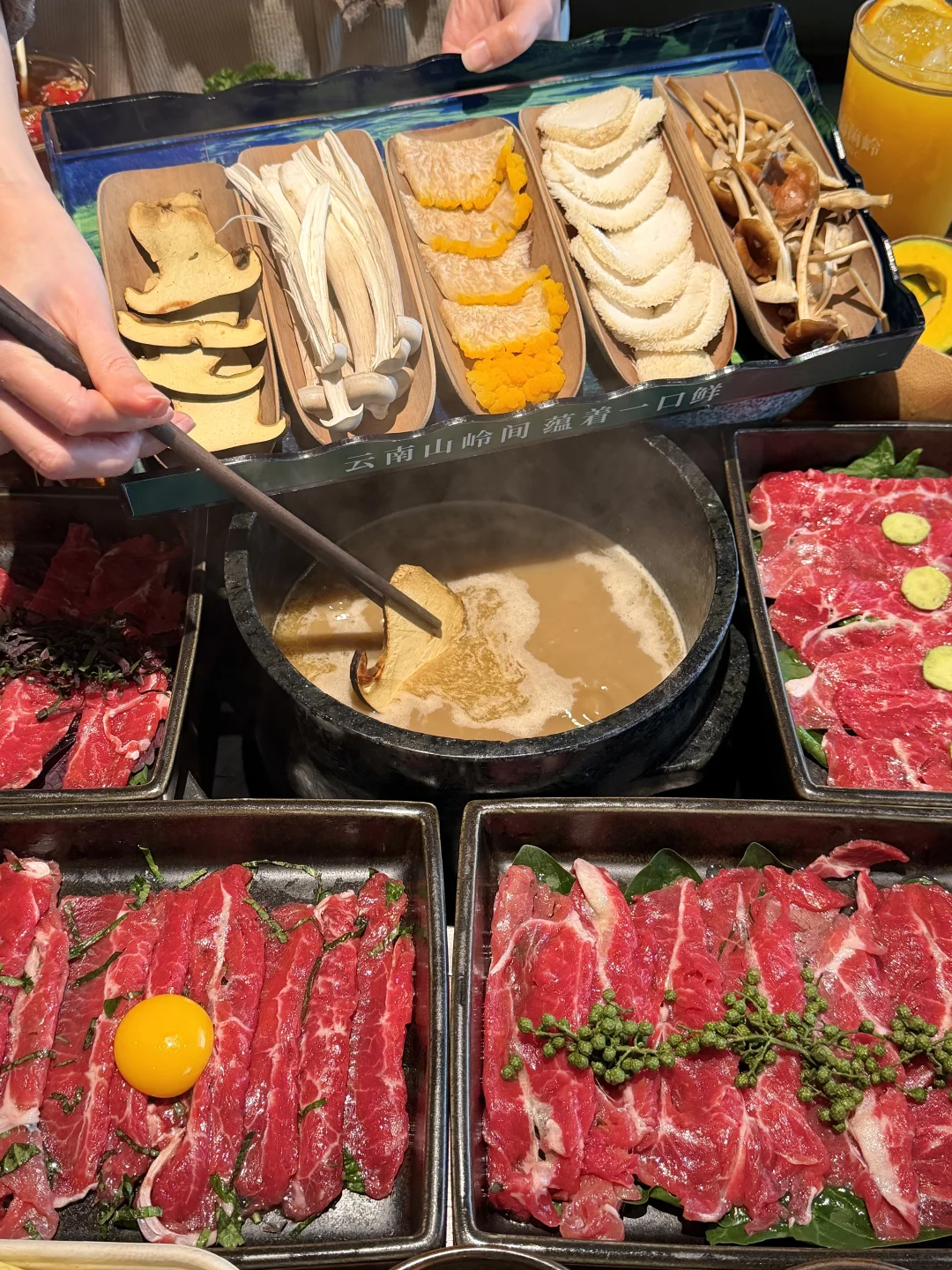 感谢益阳大学生推荐!下了高铁直奔这家不到饭点,都坐满了!我们全桌吃完一致表示尊嘟平价好吃!!! 甜品都是10+真心便宜好吃🥹抢都抢不过朋友,还有古法ye 生菌汤火锅也好绝啊!鲜切吊龙、牛肝菌、北风菌、金耳菌……感觉涮啥都嘎嘎好吃嘎嘎香(菌山菌岭