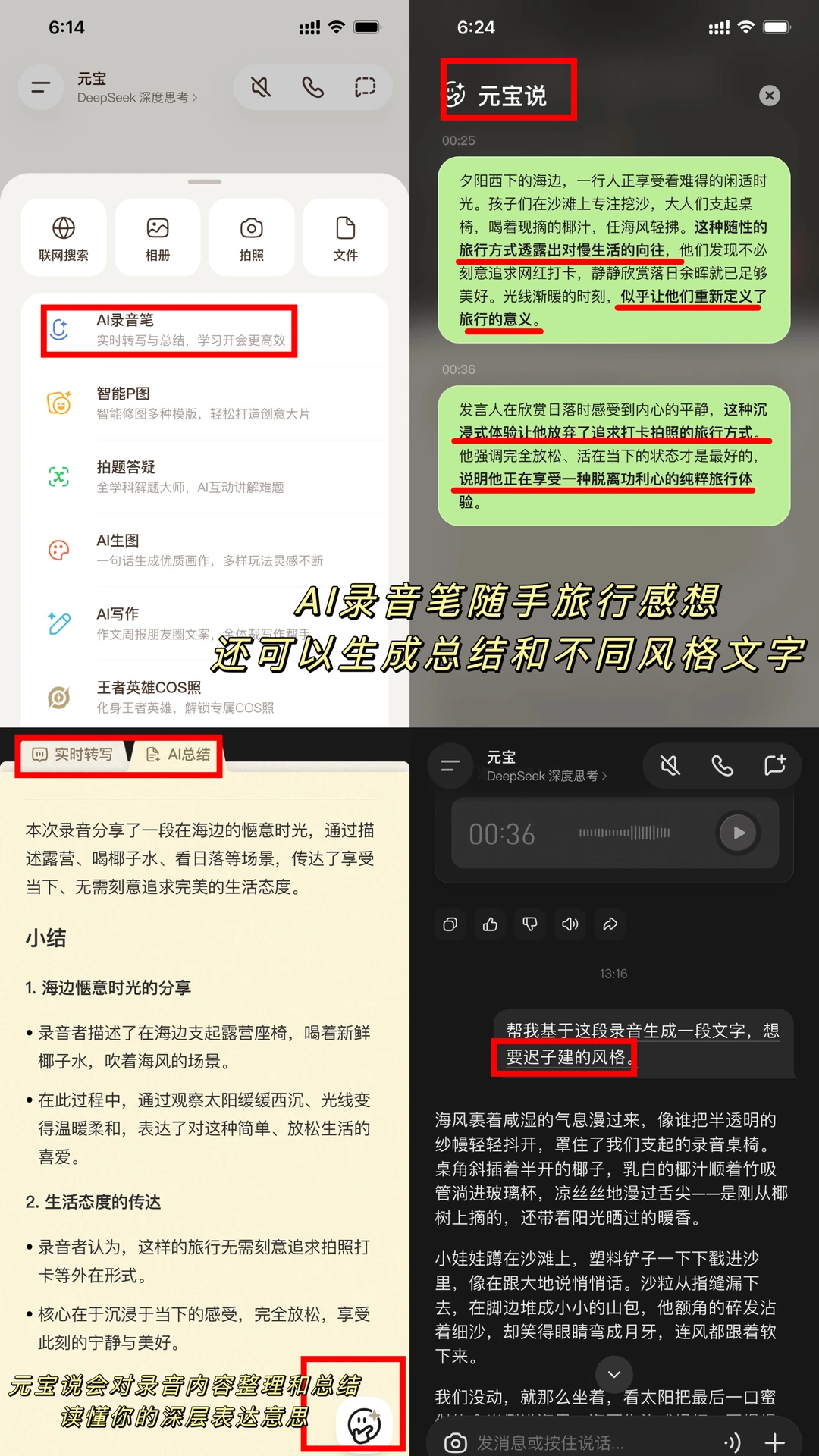 路上开着它的AI录音笔,记录娃的童言童语和浪花声,以及旅行路上零碎的所思所想。它能结合录音和照片,自动生成一篇有温度、有重点的图文日记,旅行结束,一本完整的“海陵岛回忆录”也生成了