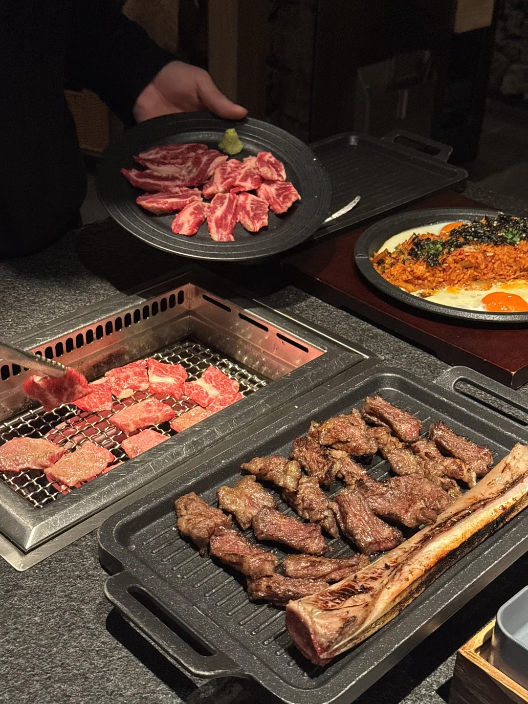 环贸新开的!不愧是没开门就大排队… 好吃s了🥹真的跟在韩国吃的烤肉一模一样! 和朋友点了雪花牛小排、韩圃王牛排、山葵雪花肋排…帅哥店员全程帮忙烤 肉质真的很鲜!据说主厨🧑🍳韩国来的,还原了正宗韩国烤肉味道… 还有甜品、泡菜炒饭真的完全不踩雷太好吃了 唯一缺点:要排队…