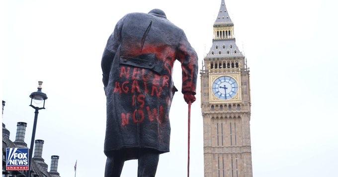 丘吉尔纪念碑遭破坏 一座纪念英国前首相温斯顿·丘吉尔的雕像遭到亲巴勒斯坦活动人士的破坏,该活动人士称丘吉尔为“犹太复国主义战争罪犯”。 伦敦一座雕塑上被喷涂了红色涂鸦,内容包括“停止种族灭绝”、“解放巴勒斯坦”和“永不再犯”。伦敦警察厅称,一名38岁男子已被逮捕。