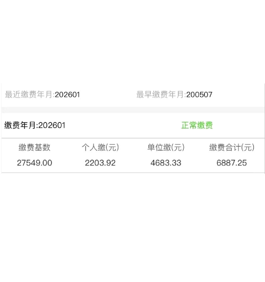 别觉得养老金个人账户能攒下四五十万是天方夜谭,现实中真有人能做到,只是大多人没达到对应的缴费水平而已。有人从2005年7月开始交社保,到2026年1月从没断缴过,一共交了247个月,也就是20年7个月,如今45岁的他,个人账户本金就有26万多,光利息就攒下11万多,本金加利利息合计已经37.36万。他当下的社保缴费基数是27549元,光个人部分每月就能入账2203元,按这个标准继续缴,到60岁退休还有15年,不算利息的话,本金还能再增39.65万,单本金就能到65.87万,再加上这15年产生的利息,个人账户余额只会更高。社保缴费基数和年限直接决定了养老金多少,你不信,不代表这样的情况不存在。