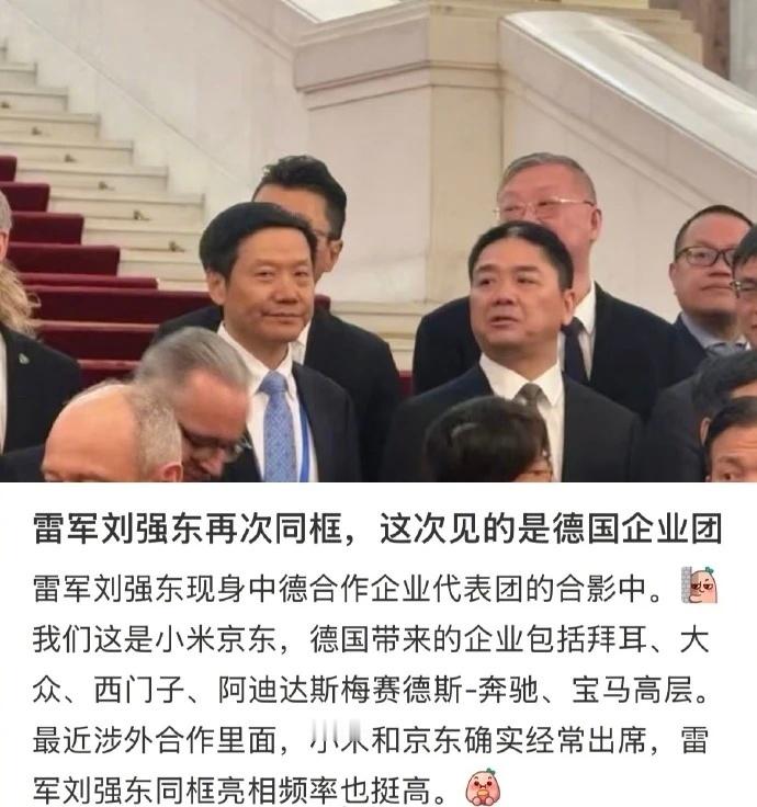 短短一个多月内,雷军、刘强东连续在两大官方外交经贸场合同框,意味着京东和小米的企业实力与行业地位,得到了国家层面的背书,已被视为能够与德国企业平等对话、寻求合作的关键伙伴。