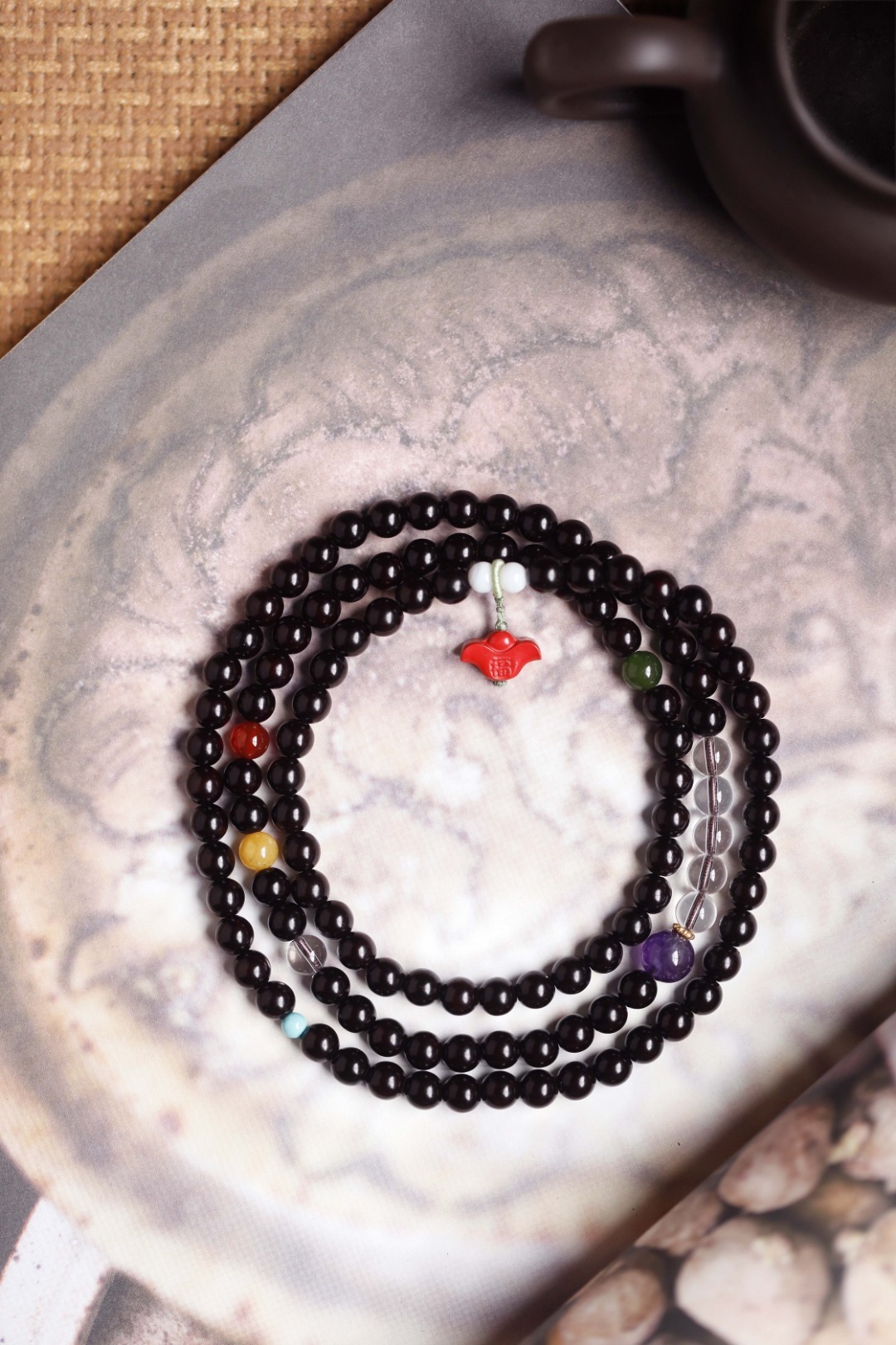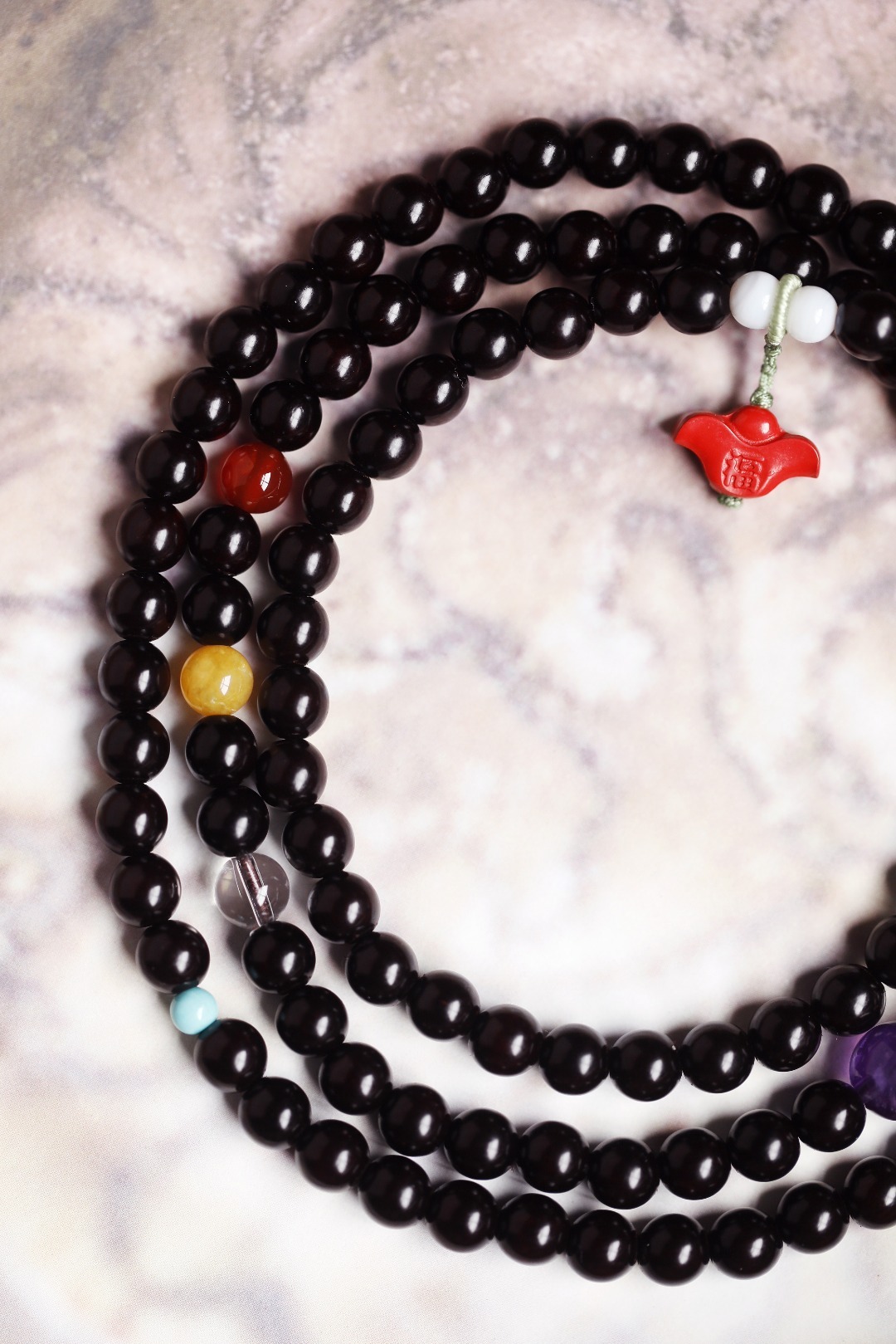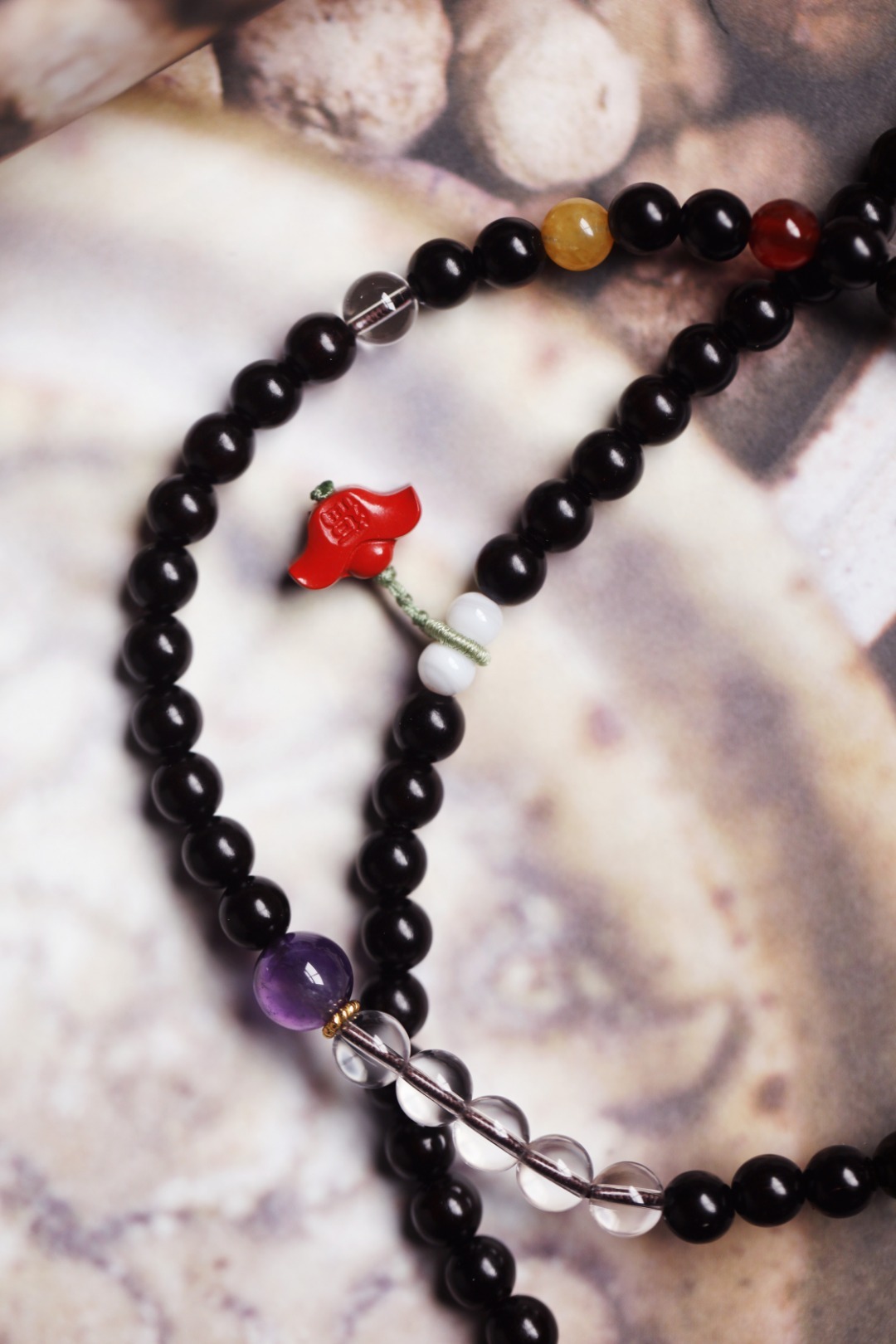 配件:朱砂、贝壳珠、紫水晶、白水晶、碧玉、玉髓、松石 紫檀 原创【采衣】6mm 108颗 手串 念珠