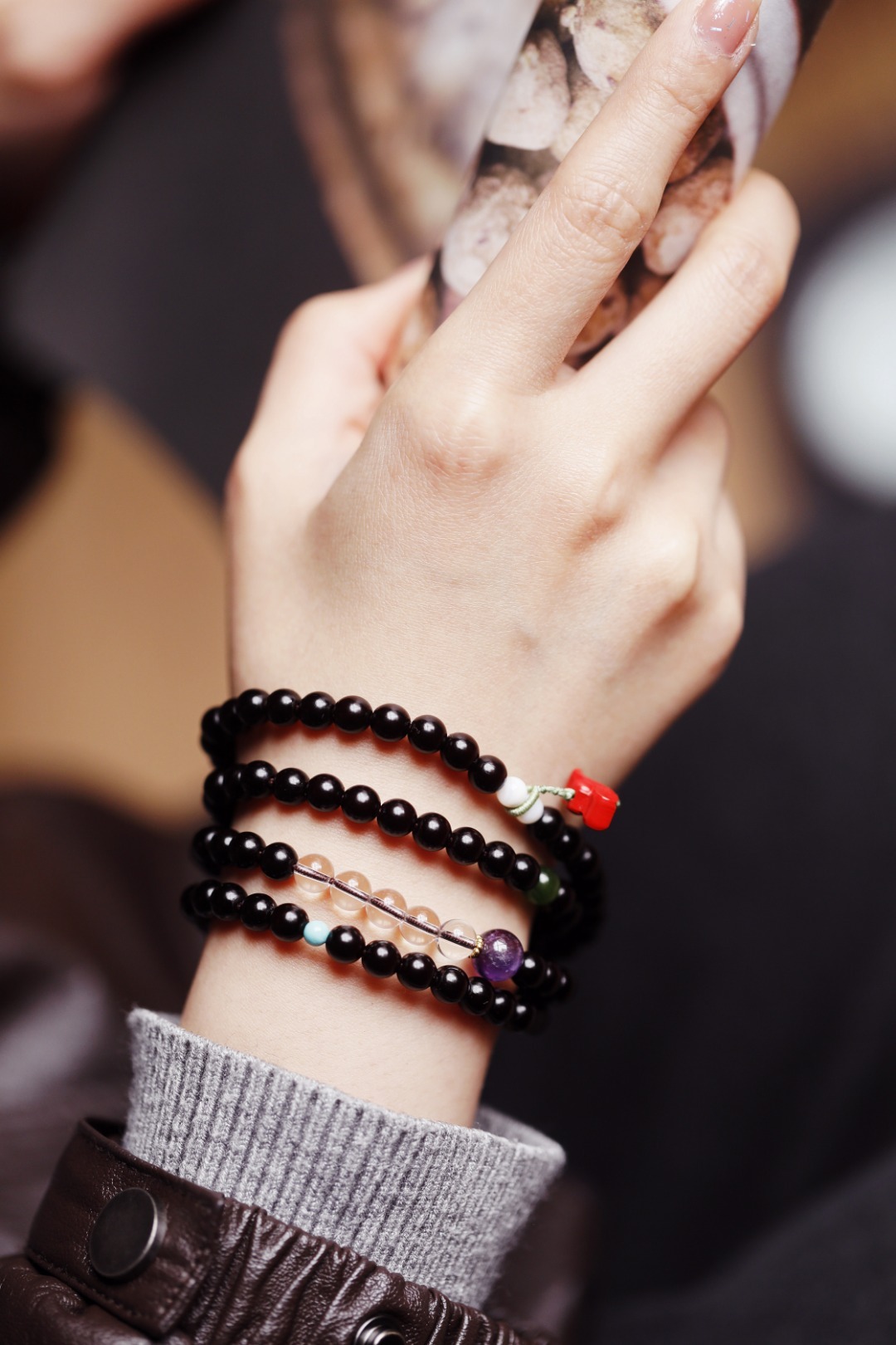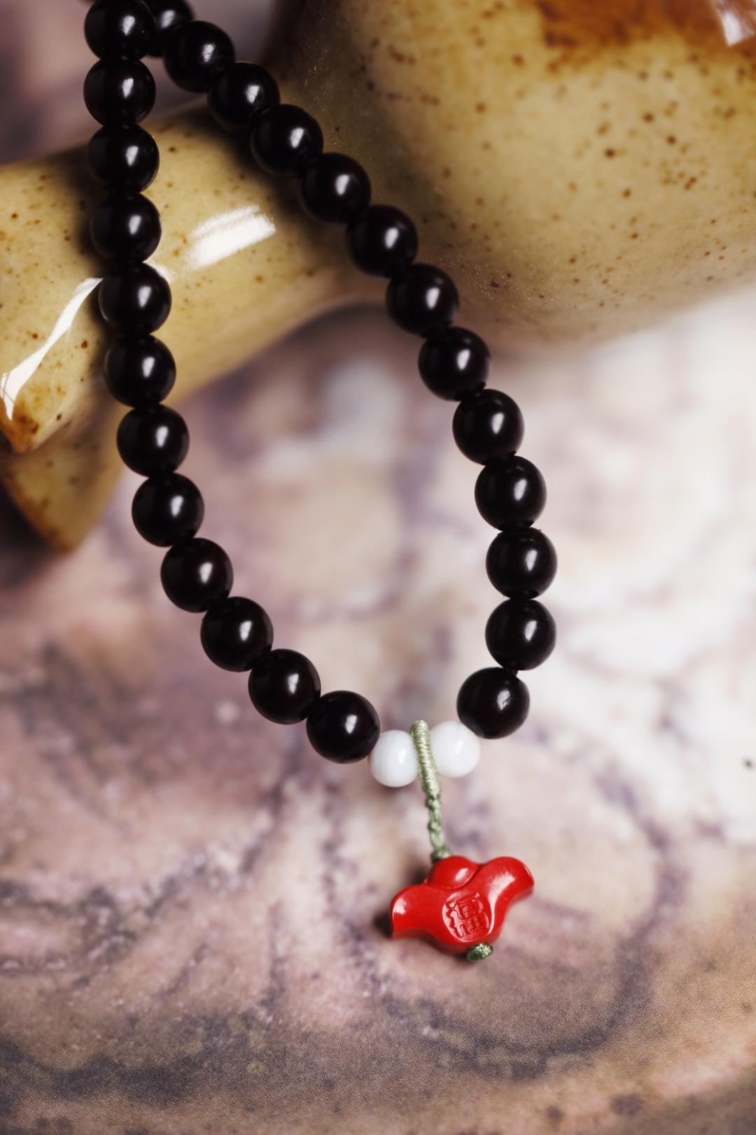 料质细腻,颗颗饱满油润,搭配朱砂、水晶等大小珠,古雅沉稳,别致经典;腕间佩戴,尽显清雅矜贵。
