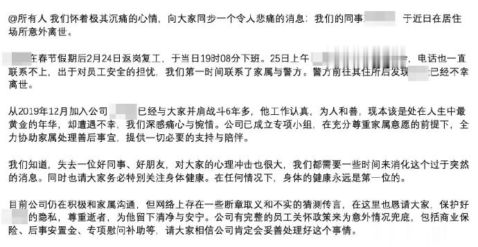 有网友在脉脉爆料,一名米哈游员工正月初八在出租屋内猝死。2月27日,米哈游内部发文回应米哈游员工意外离世。