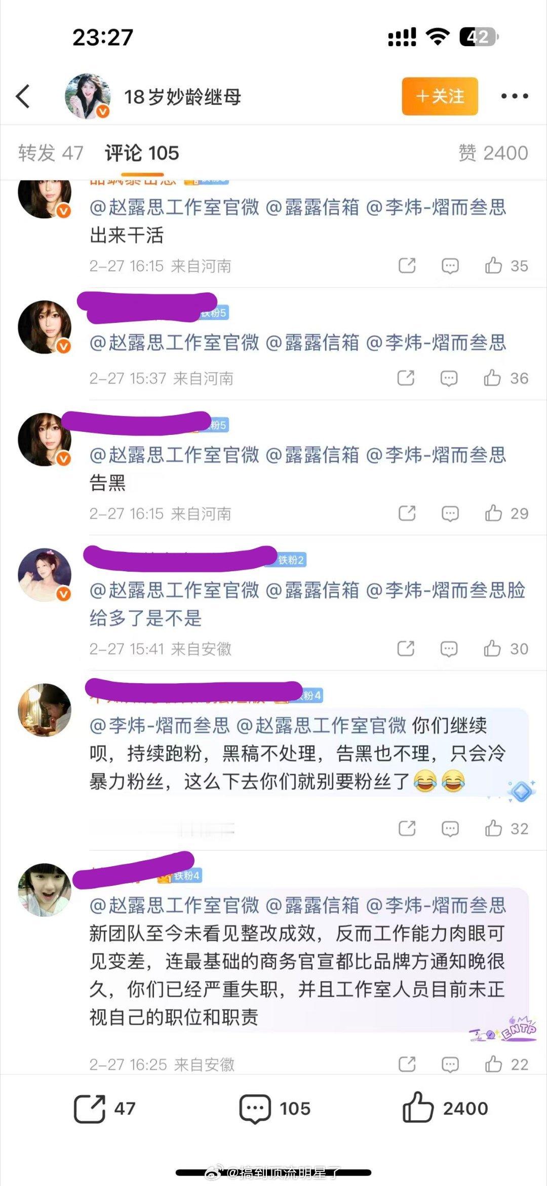 赵露思迟迟没进组,持续跑粉,在抖风评变差,粉丝开始麻辣工作室了