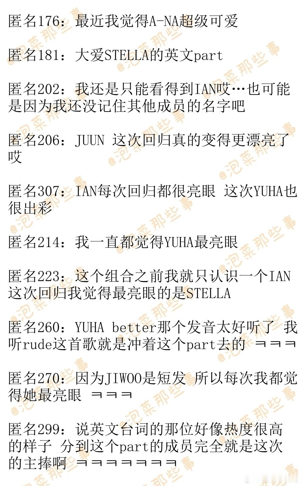 🔥韩网热帖评论翻译🔥Hearts2Hearts《RUDE》这次回归最亮眼的成员你觉得是谁啊??韩网原帖帖主发问:Hearts2Hearts这次回归最亮眼的成员你觉得是谁啊?? 我觉得是JUUN和YUHA JUUN越来越漂亮 表情也越来越丰富了感觉?? 笑起来太好看了简直 YUHA不但live实力大有长进 而且最后那个part的编舞消化得特别好 cr.instiz