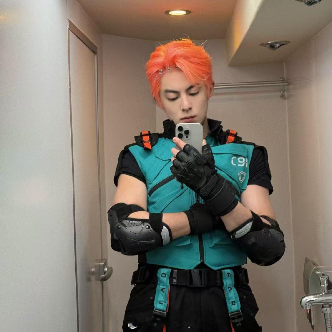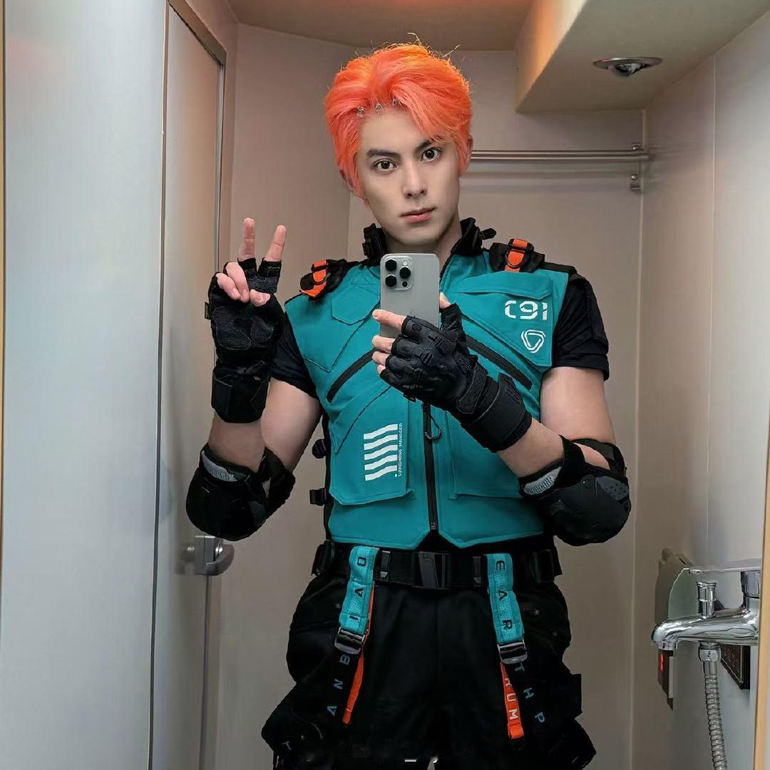 王鹤棣橘发对镜拍王鹤棣花里胡哨的橘毛徐天彪你好帅啊!!!
