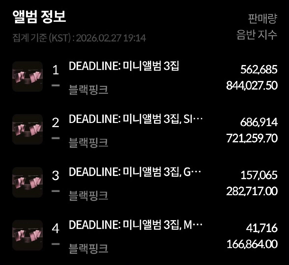 BLACKPINK破kpop女团首日销量纪录H榜实时销量新纪录被墨打破了实时销量:1,448,180(+159,800) 打破H榜女团首日销量新纪录