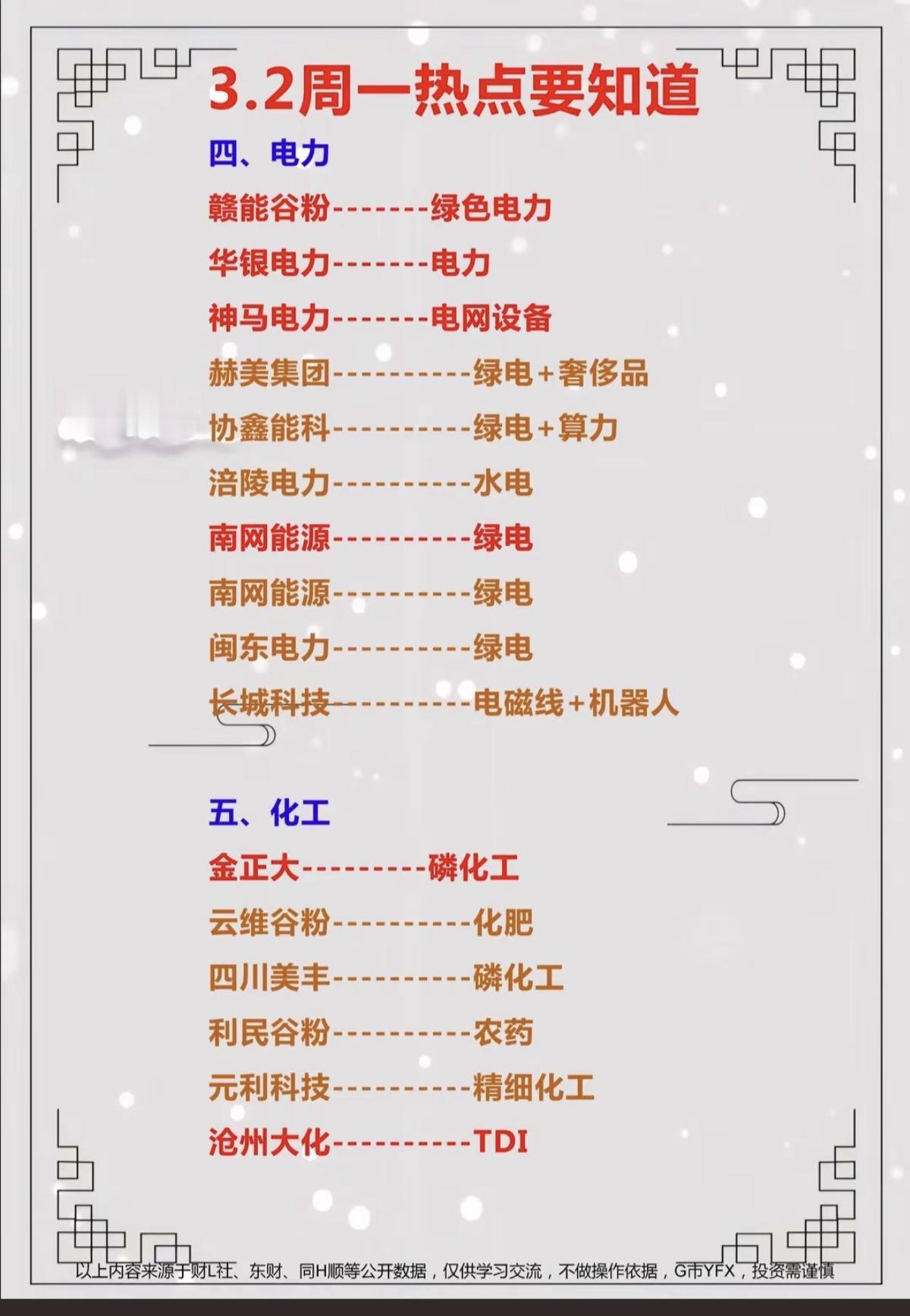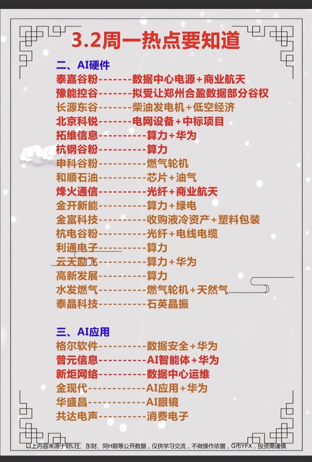 3.2周一 市场热点方向+投资逻辑! 1.有色金属,小金属 2.人工智能:AI硬件、AI应用 3.电力(火电、智能电网) 4.化工原料涨价,磷化工 5.机器人