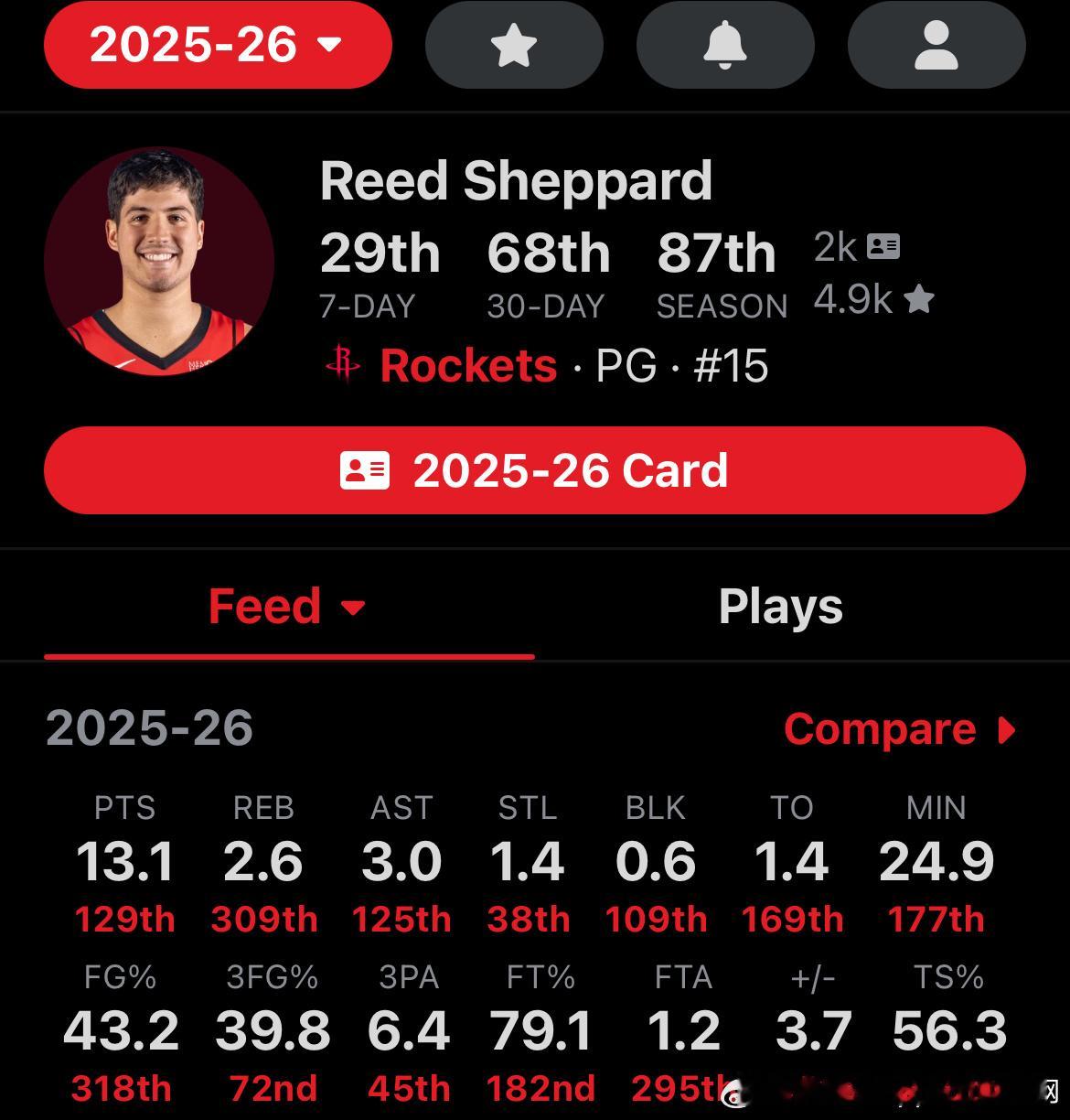 看起来两个人(图1,图2)投射效率差不多…谢产量高…只是普里查德时间少,不过正负值谢高出不少普里查德,真正爆发是在职业生涯第5年(图3)…对年轻球员还是要有点耐心