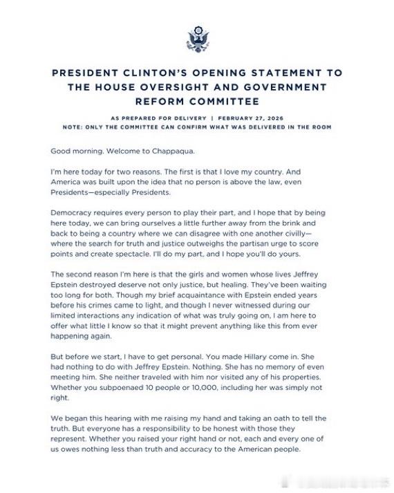 【黄金时代】克林顿声称,对爱泼斯坦罪行不知情