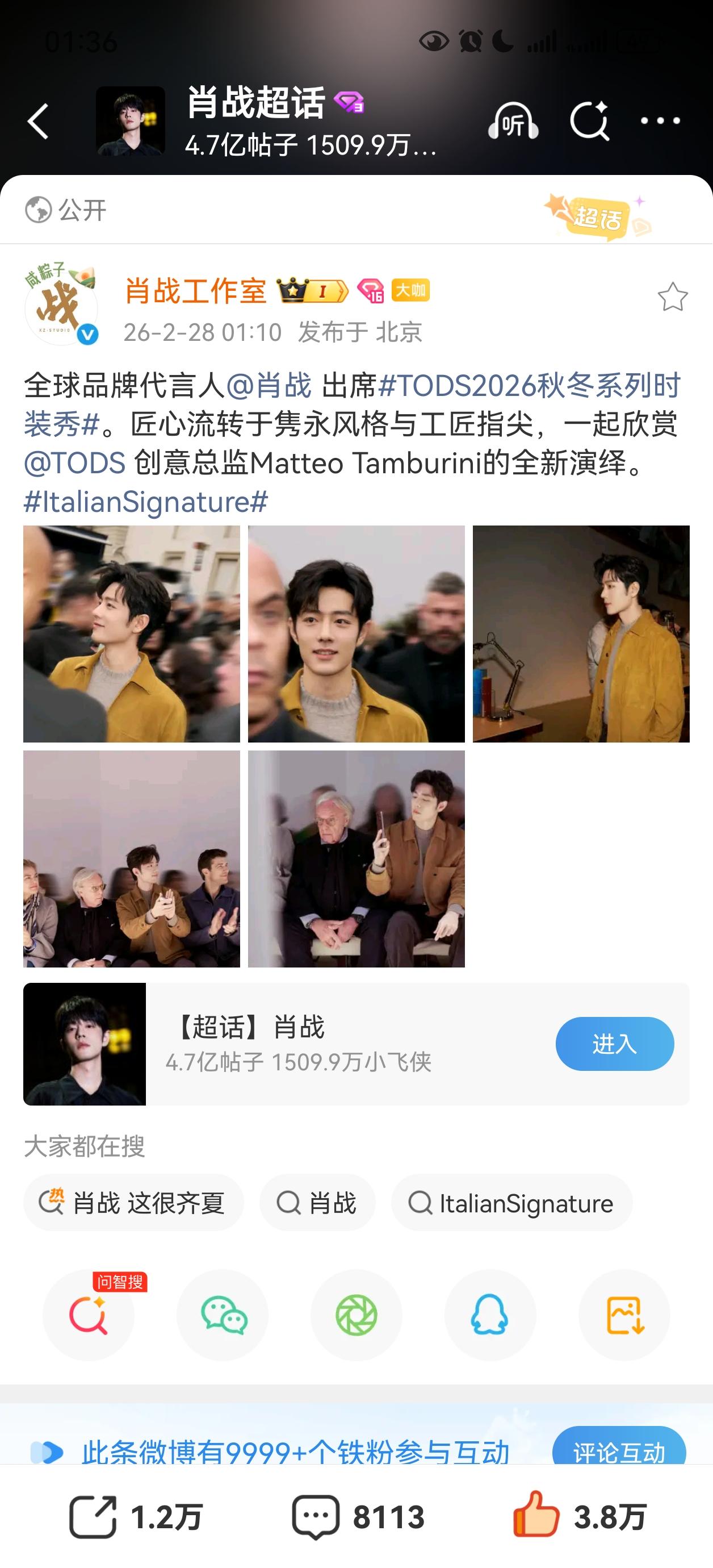 战战和小室发了tods的照片,他去tods的大秀真的格外松弛,闲庭信步的感觉[赞