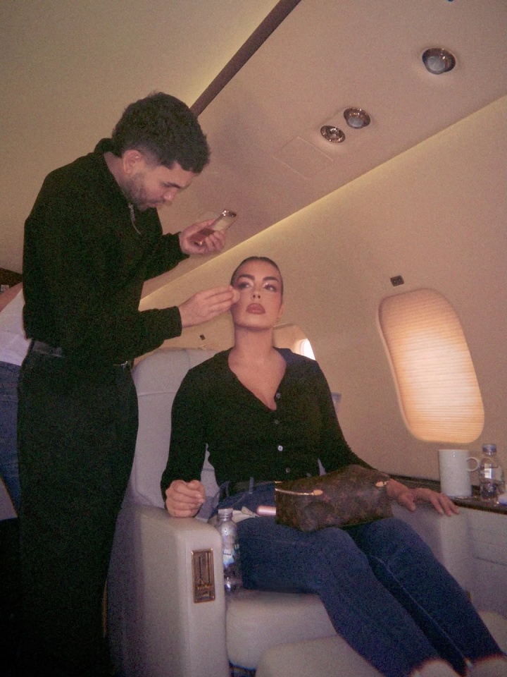 乔治娜晒照前往米兰参加活动,在飞机上尽显火辣身材