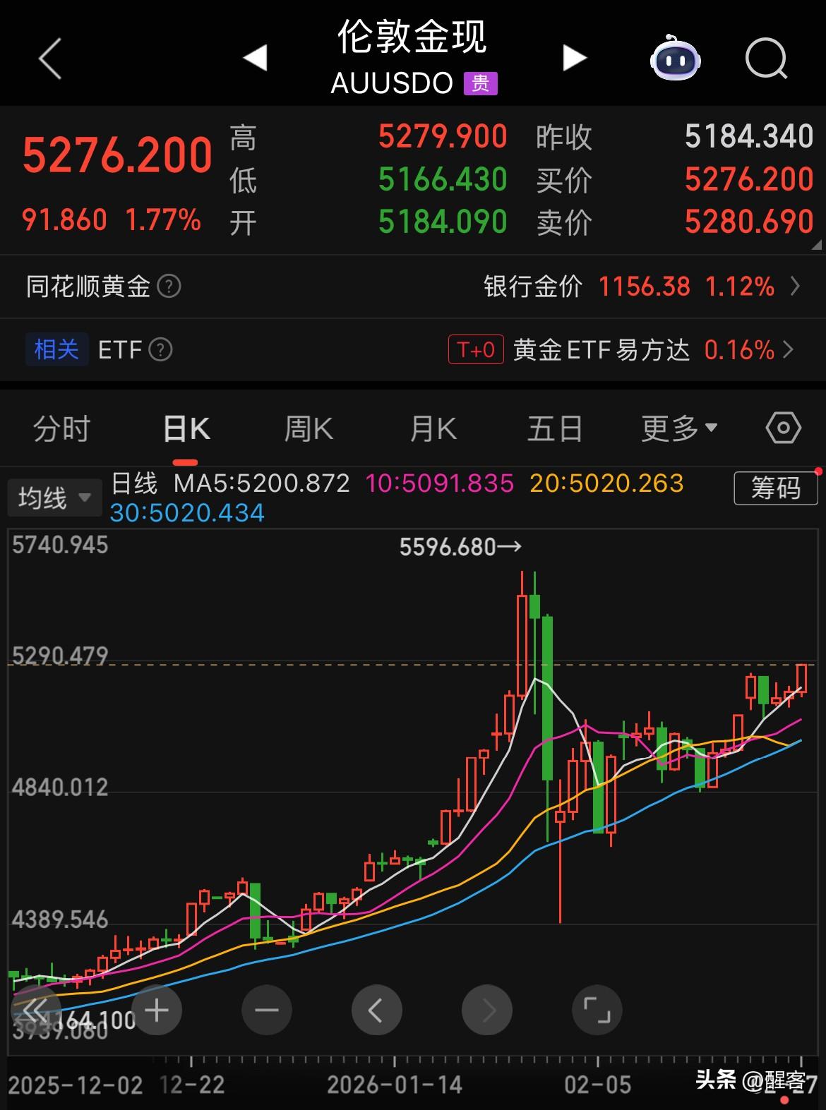风声鹤唳,不管打不打,贵金属和石油价格先涨为敬。 黄金现货价格目前价格5276美元/盎司,即将收复最近崩盘的价格高点。白银现货价格虽然距离上次高点较远,但是白银每日的波动幅度很大,今日再次大涨了7%,现价93.597美元/盎司。
