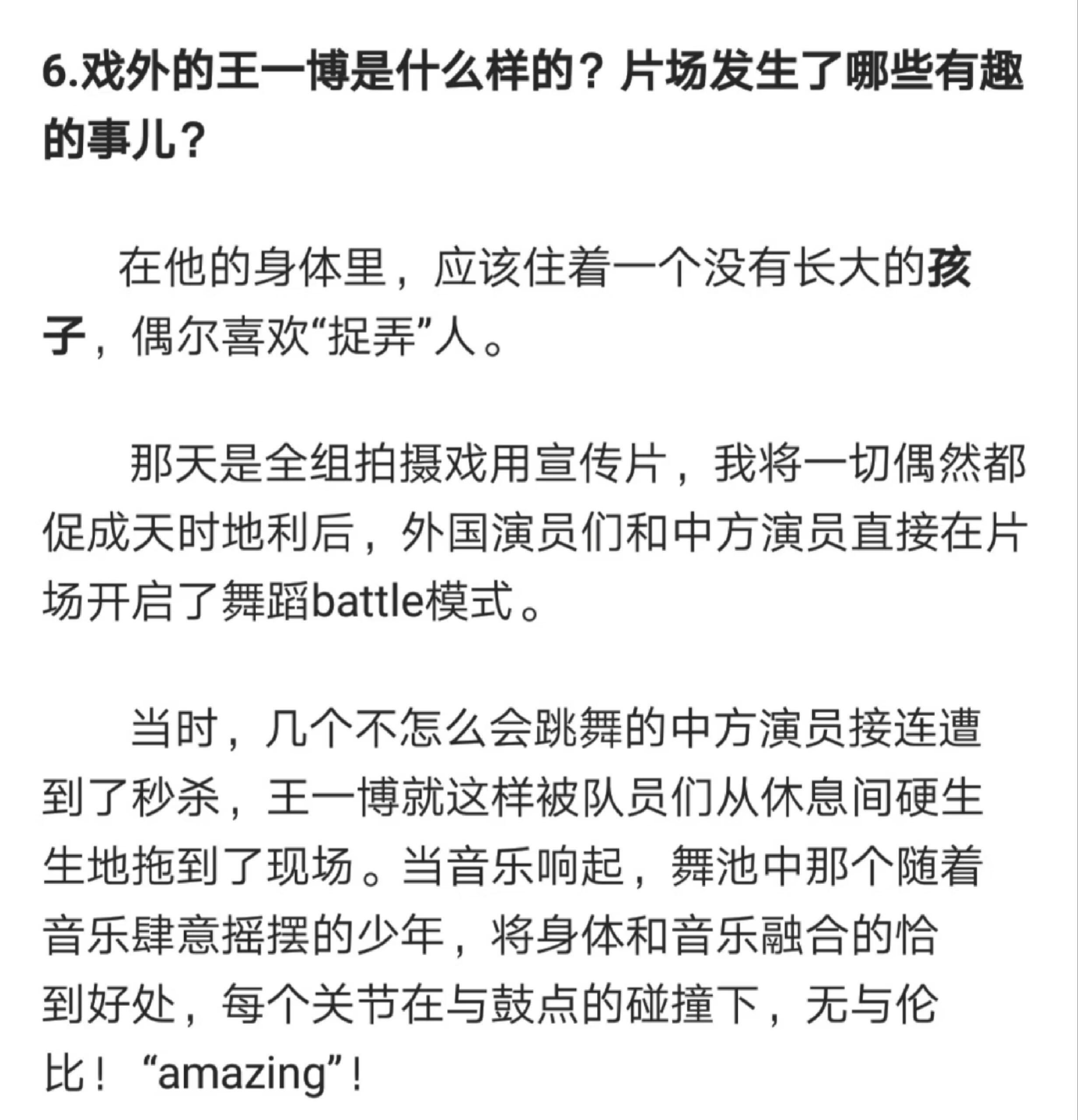王一博说的是实话。他说他在观众面前、在粉丝面前和私下的他不一样。确实。差距太大了