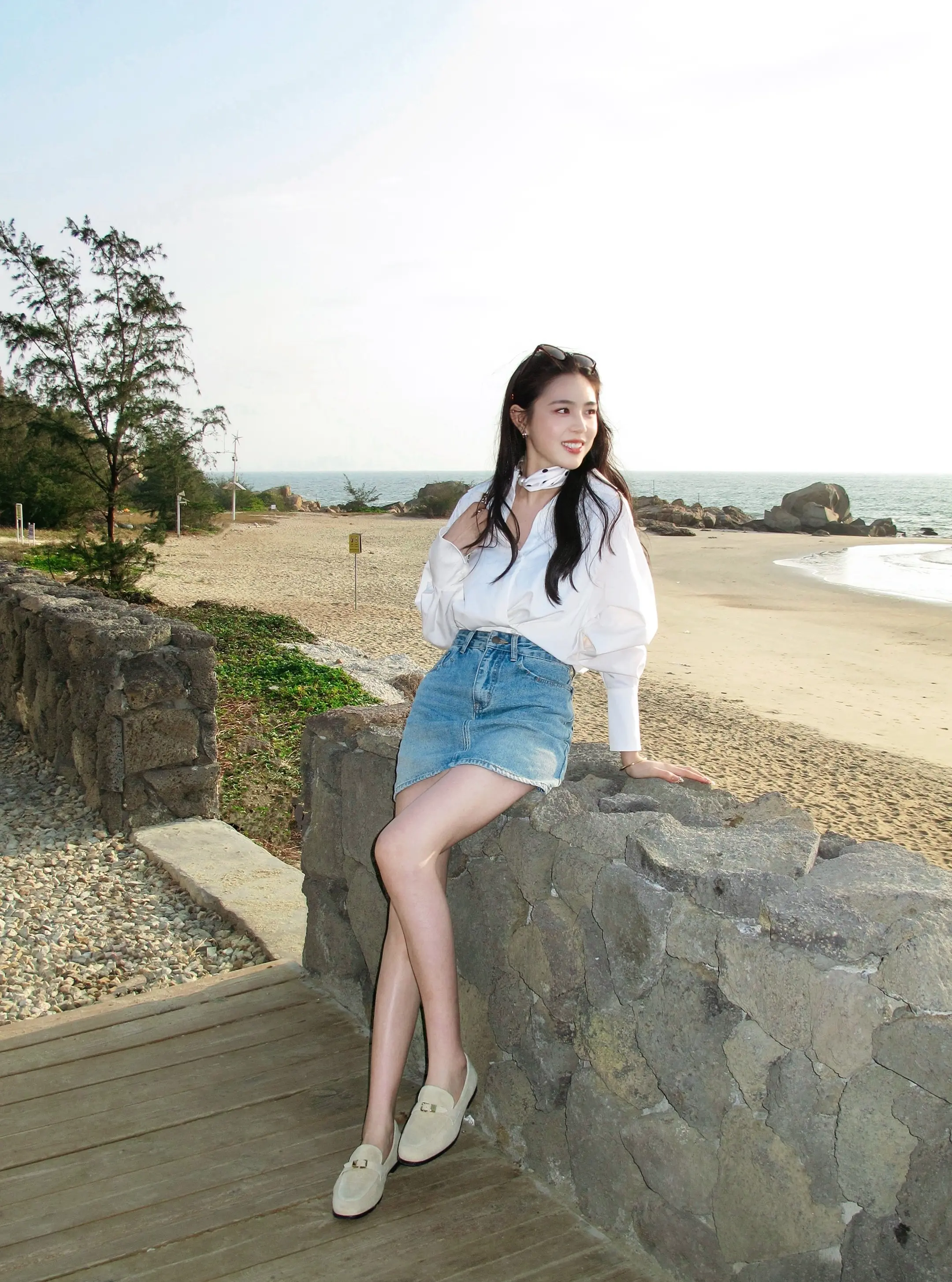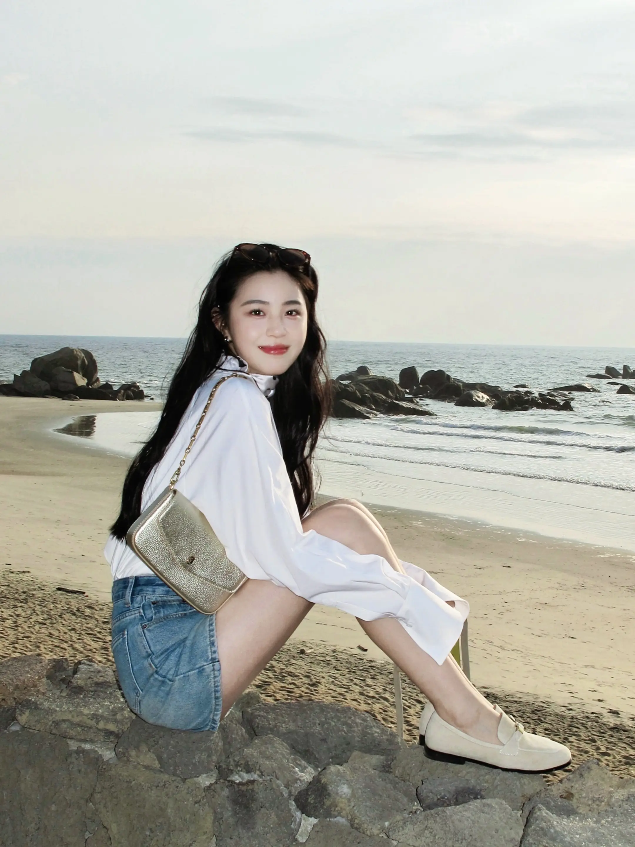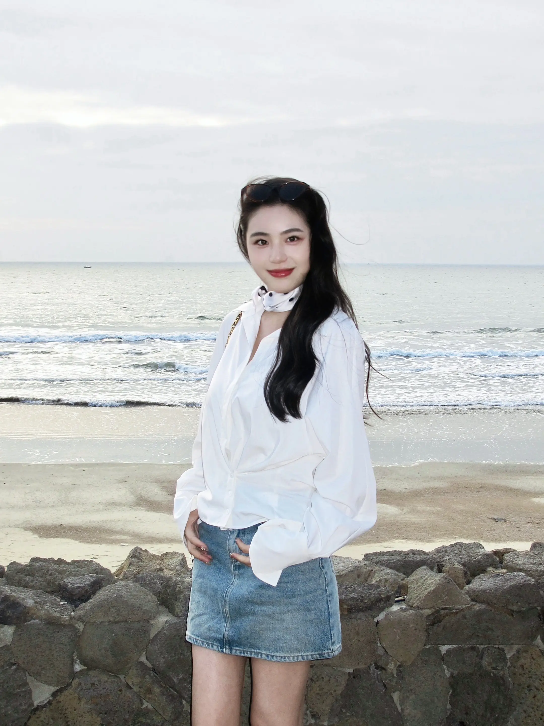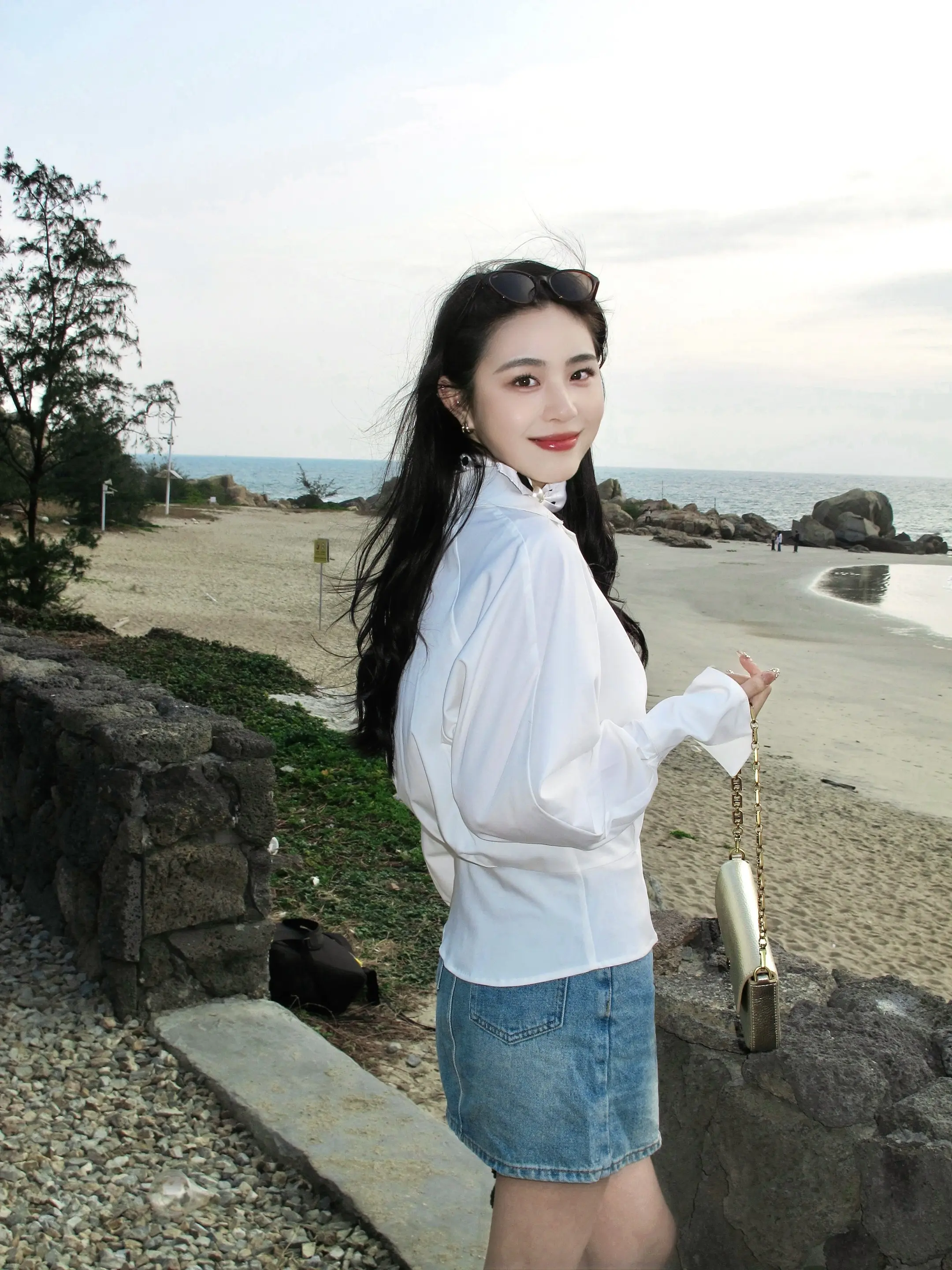 白衬衫 ccd 在海边