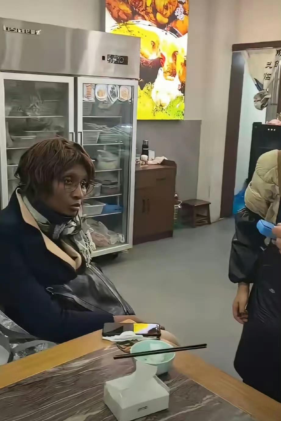 浙江某餐厅,黑人女子来就餐。 菜做好了她说没钱了,给张银行卡密码不知道。 老板无