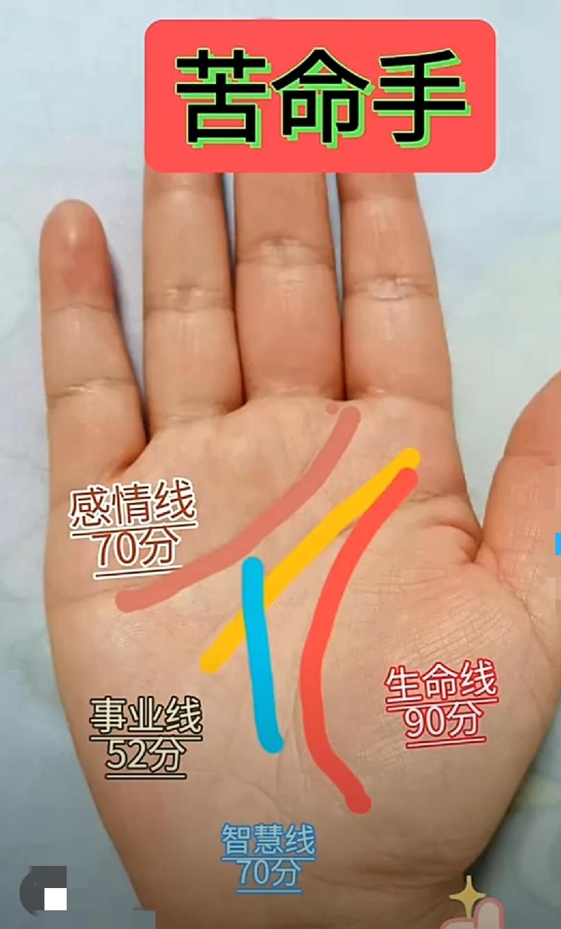 掌纹的秘密——看一看你的掌纹“感情线”、“智慧线”以及“生命线”,测一测你是什么手型? 每个人掌纹都隐藏着秘密,以右手为准,帮轻松识别核心信息。感情线 (天纹)是最上方横线,从小指下向食指延伸情感表达、人际关系 清晰直达食指,重精神契合,短直,务实直接,如末端分叉表明情感细腻多变。 智慧线 (人纹) 中间横线,与生命线同起点,向掌心延伸,平直清晰表明逻辑强、决断快,弧度大表明想象力丰富、偏感性,如断裂有波浪,表明专注力需加强。 生命线 (地纹) 最下方弧线,环绕大拇指根部 。如深长清晰表明体质好、恢复快,浅淡有链状表明童年体质弱或易疲劳,与寿命长短无直接关系。 多数人掌纹是兼形。掌纹会随情绪、作息、健康变化,不必绝对化,这是民俗文化趣味参考,非科学定论。