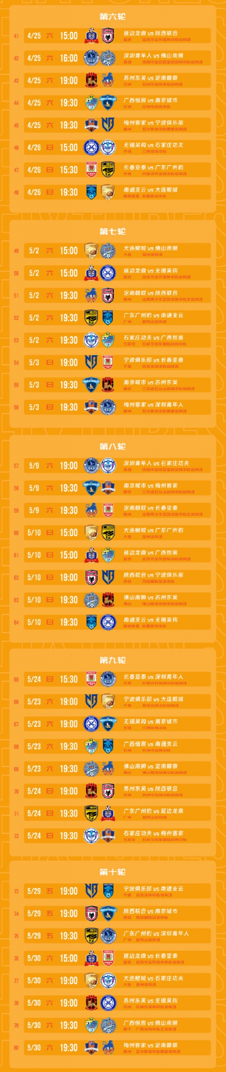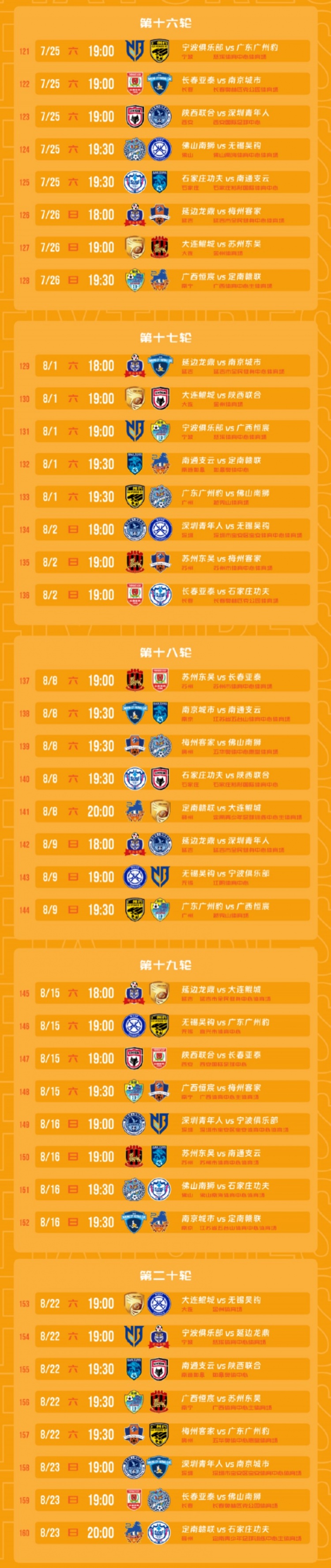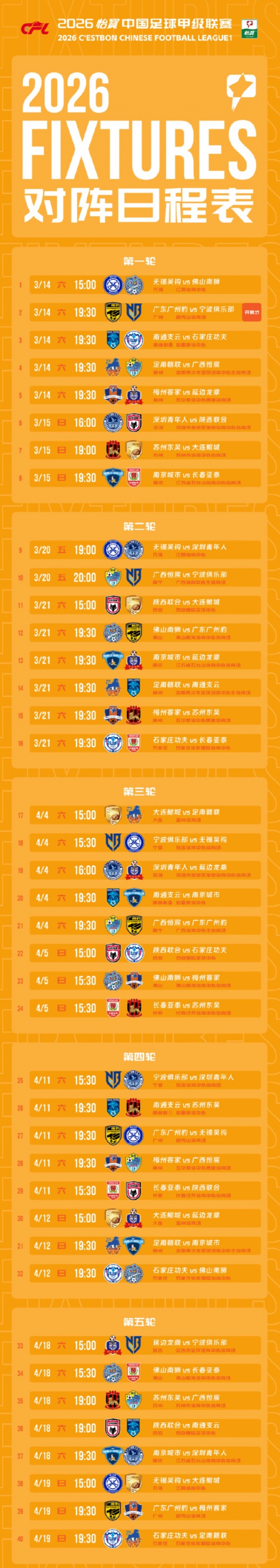中甲首轮赛程: