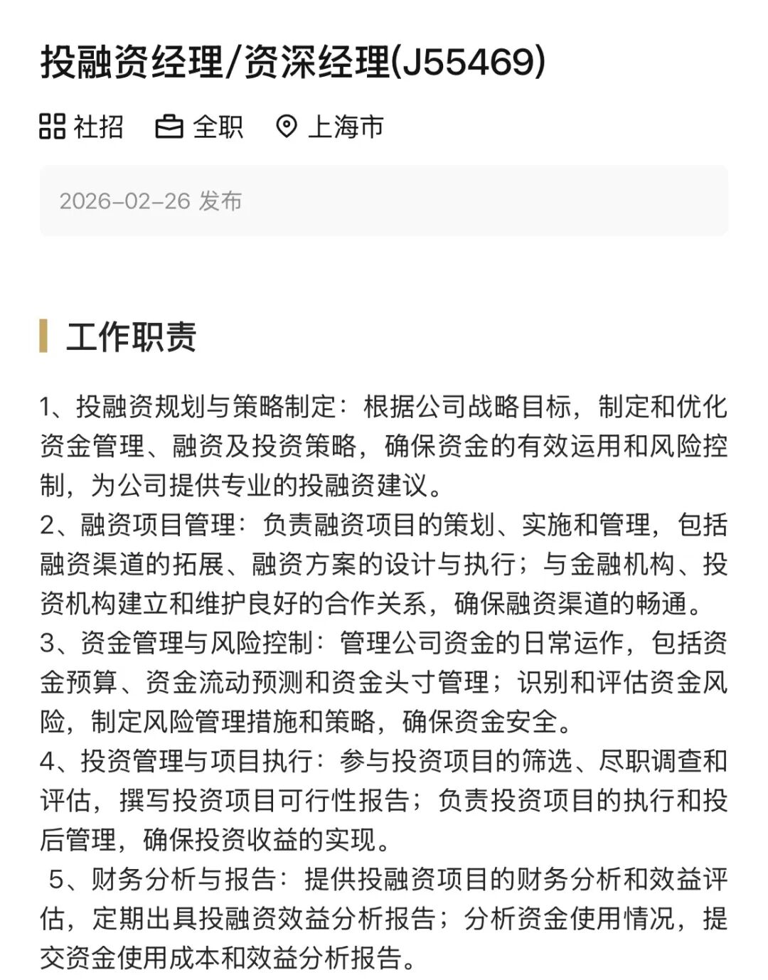 追觅2月26日发布的“投融资经理”岗位要求显示,工作职责包含投融资规划与策略制定、融资项目管理、资金管理与风险控制、投资管理与项目执行等。