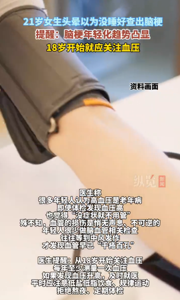 21岁的小王同学,以为是熬夜太累,睡一觉就好,却没想到竟是脑梗,相关话题冲上热搜。