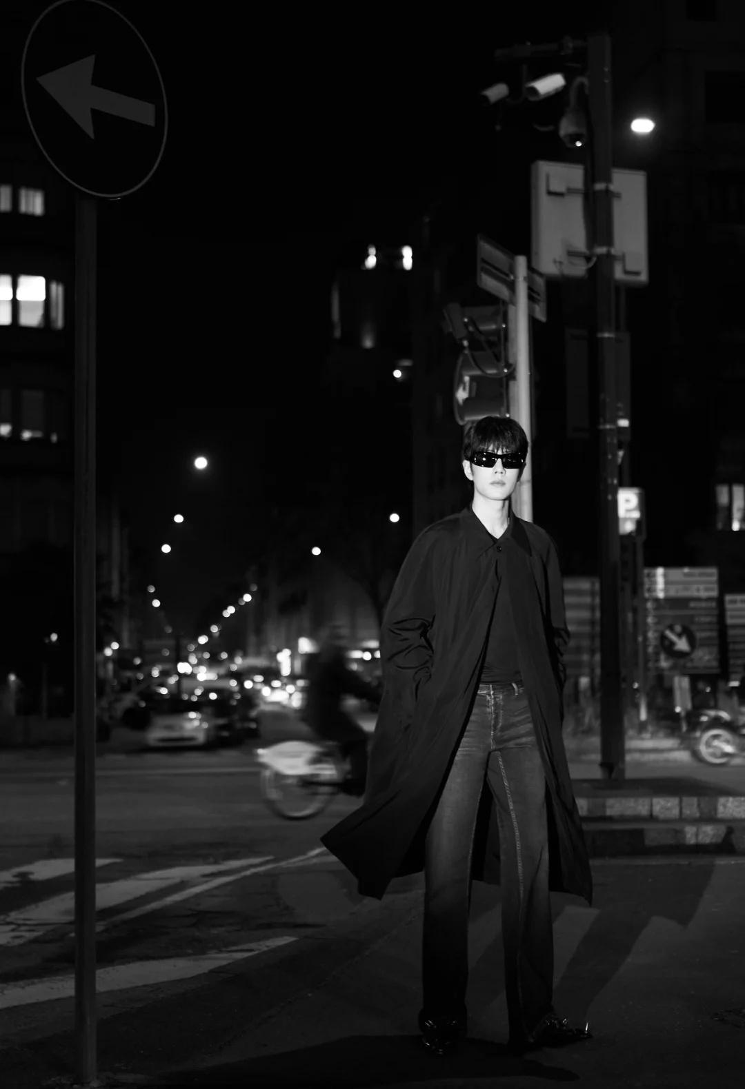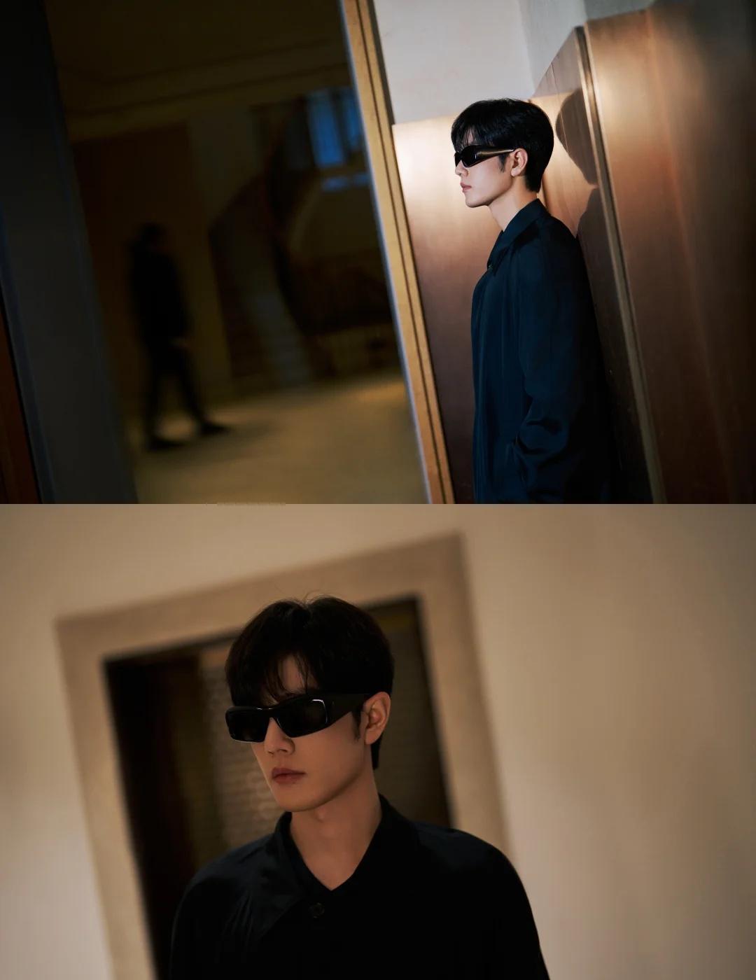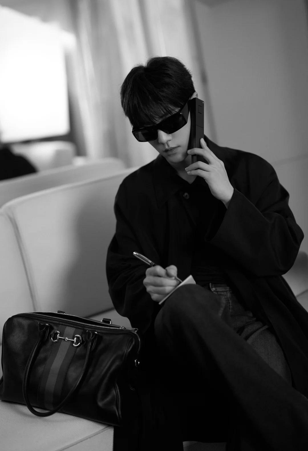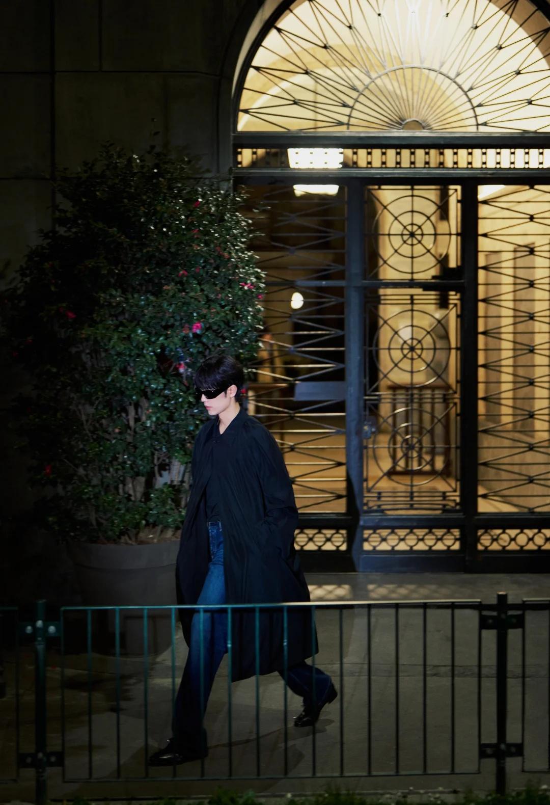 肖战米兰时装周看秀G社生图,这副墨镜的款式又方又大,像90年代港片里反派的标配,