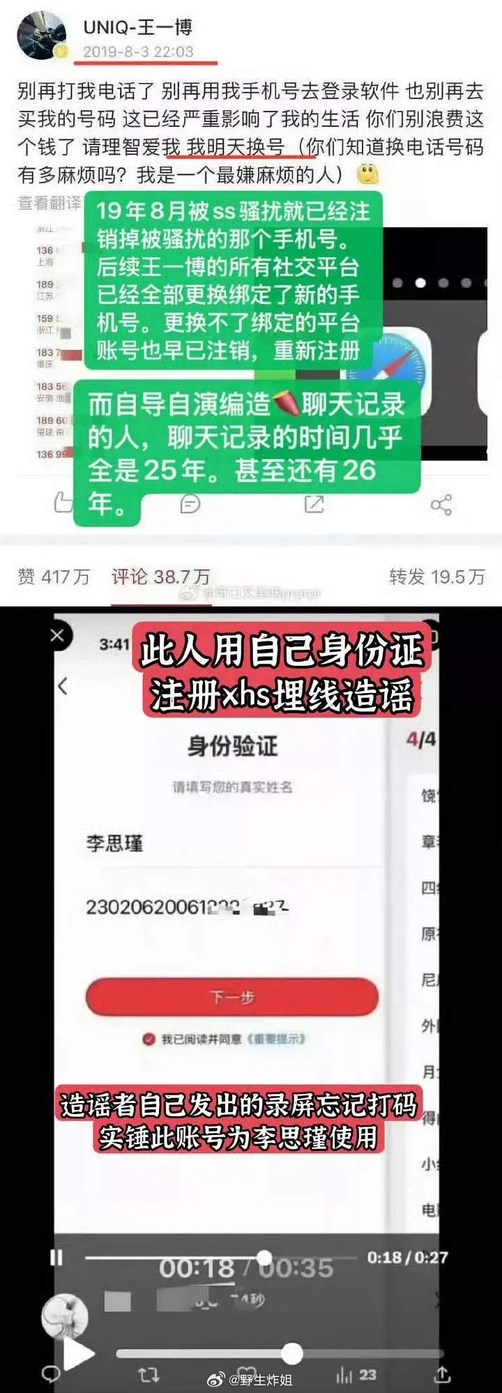 王一博好像在2019年就把那个手机号换掉了?王一博律师已取证