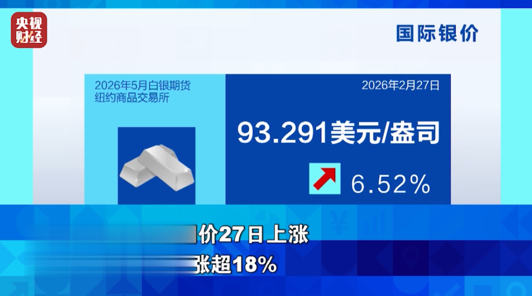贵金属市场方面,中东地缘紧张局势推动市场避险情绪升温,加之美元指数下跌,国际金价周五上涨。截至收盘,纽约商品交易所4月交割的黄金期价收于每盎司5247.90美元,涨幅为1.03%。白银方面,实物白银紧缺,绿色能源和AI科技发展带来的工业需求,都让投资者继续看好银价上涨前景,纽约白银期价周五显著上涨。截至收盘,纽约商品交易所5月交割的白银期价收于每盎司93.291美元,涨幅为6.52%。