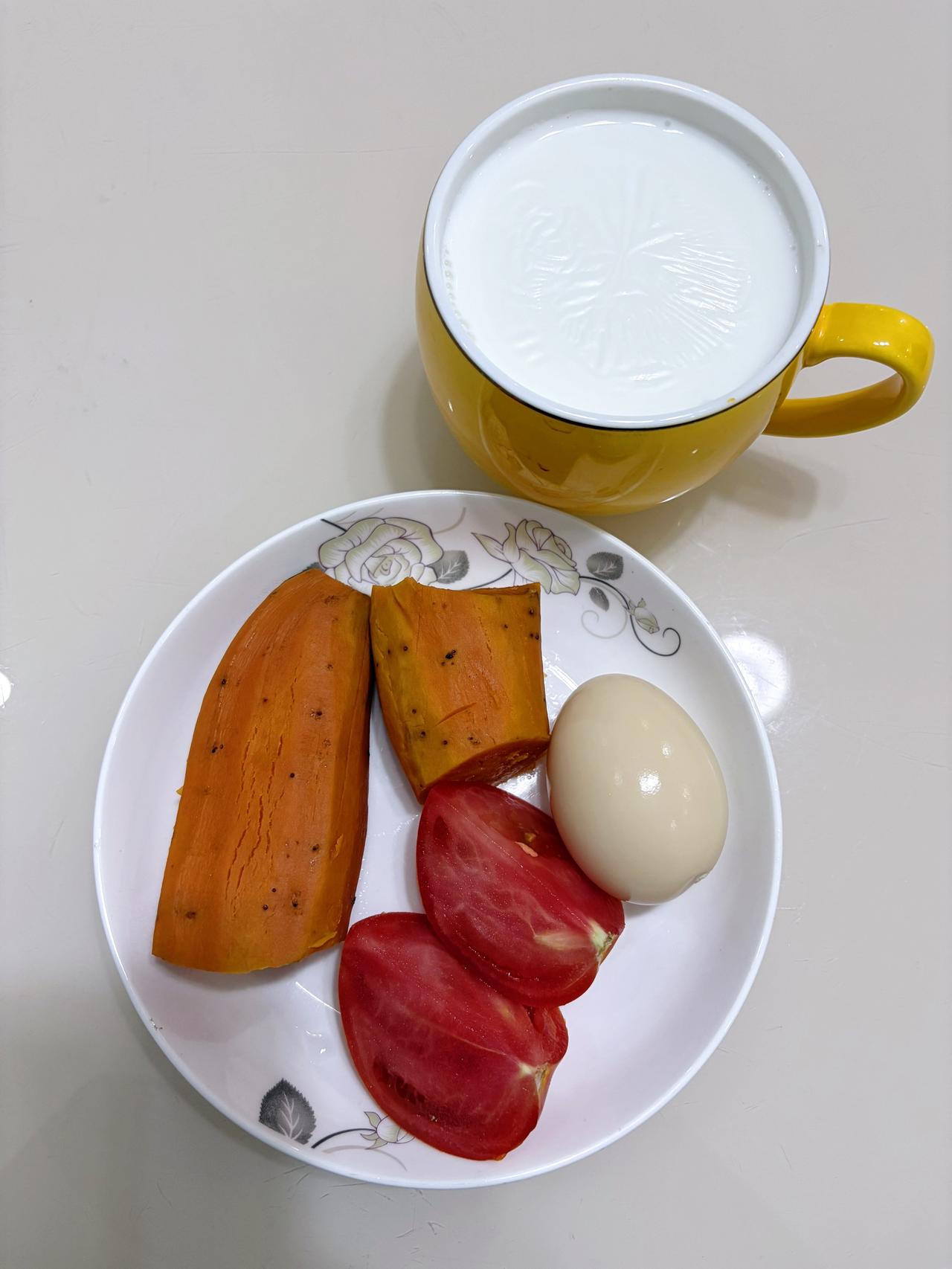 自律减脂健康餐,目标95斤,加油 今日减脂早餐:红薯+鸡蛋+番茄+牛奶 体重管理