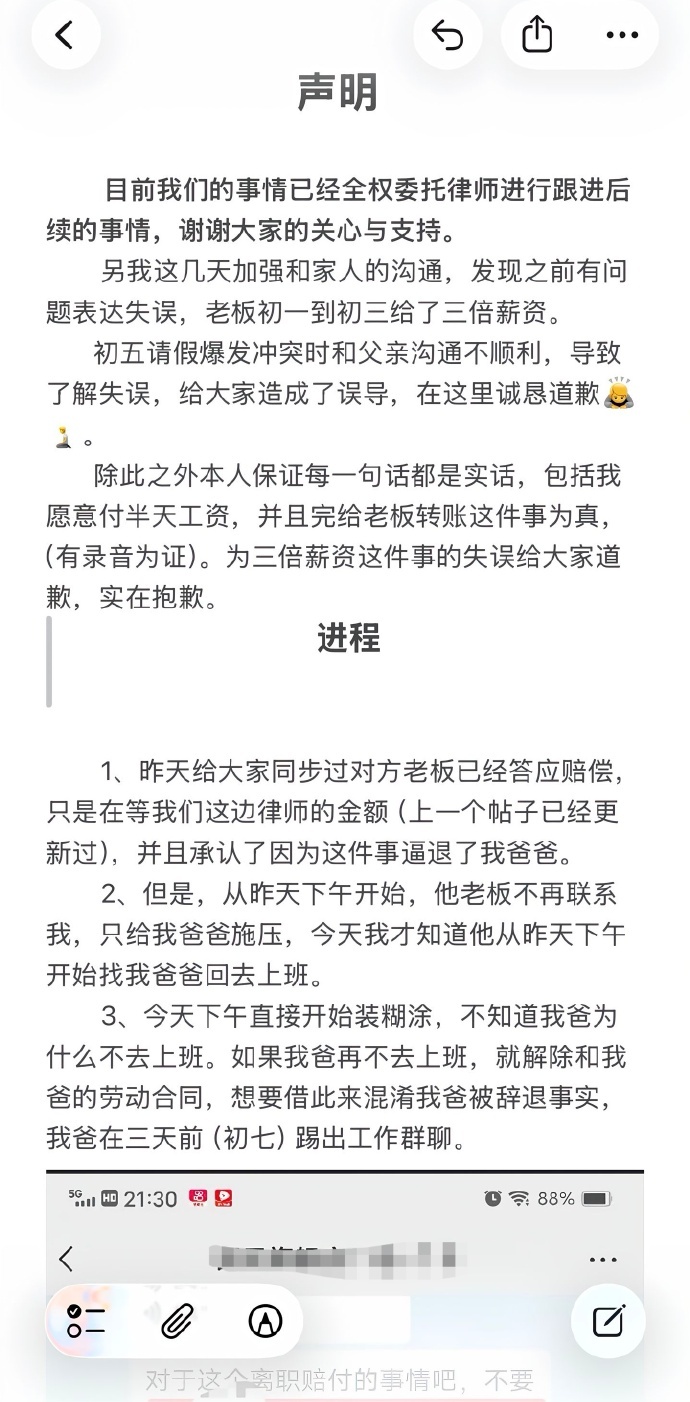 臭豆腐店回应女子替父请假致其被辞 俗话说胳膊拧不过大腿,在员工与店铺之间臭豆腐店肯定是大腿,所以最后女子和父亲估计只能妥协。从绝情臭豆腐店的后续反应来看显然得到了“高人”指点,又是让女子父亲去上班又是不认账,还通过各种方式直接向女子父亲施压,后面估计还有招逼迫女子就范。