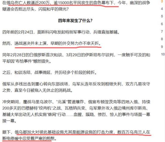 打了1461天,泽连斯基要走人了?他留给乌克兰的只剩遍地废墟   到2月24日,俄乌冲突整整打了四年,算下来刚好1461天。这场战争比当年的苏联卫国战争还多了43天,成了二战后欧洲最惨烈的战事。曾经的东欧大国乌克兰,如今早已没了当初的样子,只剩下满目疮痍的土地和苦苦支撑的民众,而总统泽连斯基的位置,也越来越不稳固。   四年战火下来,乌克兰的城市被打得面目全非。全国14%的住房都被炸毁或损坏,超过300万户家庭没了家,每7套房子里就有1套彻底不能住人。像马里乌波尔、巴赫穆特这些前线城市,几乎被夷为平地,高楼变成了碎砖头,马路炸成了坑洼的土沟,别说住人,连站脚的地方都难找。   基础设施更是惨不忍睹,3000所学校、600家医院严重受损,孩子们没法正常上学,生病也难找到完好的医院治疗。   能源设施被反复打击,到了冬天零下20度的低温,很多地方每天只能供电2到4小时,供暖基本中断,老百姓裹着被子点蜡烛,喝着冷水过冬,这就是现在乌克兰人的日常。 更让人揪心的是兵源问题。   曾经能动员青壮年参军的乌克兰,现在已经没了办法,只能让老人上战场。泽连斯基在2025年底签署法令,允许60岁以上男性签合同当兵,现在乌克兰军队里60岁以上的士兵占比已经达到12%。   自冲突爆发以来,乌克兰虽然动员了60多万人参军,但18到60岁的适龄男性里,有40%都想方设法逃避兵役,要么出国避难,要么伪造健康证明。前线每月都需要补充数万兵力,可新兵的平均年龄已经升到了43岁,2024年以来,60岁以上的伤员数量更是激增了83%。   这不是因为老人愿意打仗,而是乌克兰实在没兵可用了,年轻人要么死在了战场上,要么跑光了。人口流失也让乌克兰元气大伤。战前乌克兰有4300万人口,现在实际留在国内的常住人口只剩3100万左右,超过800万人因为战乱逃离了国家。   每4个乌克兰人里,就有1个背井离乡,有的家庭逃了一次又一次,家没了,亲人没了,最后只剩一个行李箱。联合国数据显示,冲突已经造成超过1.5万平民死亡、4.1万人受伤,766名儿童遇难,这些数字背后都是一个个破碎的家庭。   面对这样的惨状,泽连斯基在镜头前还在硬撑,但乌克兰民众已经不买账了。最新的民调显示,现在只有不到50%的乌克兰公民还信任他,45%的人不希望他战后继续留在政坛。   越来越多的人觉得,国家现在的发展方向错了,这场仗已经打不下去了。更关键的是,西方的援助也靠不住了。美国的援助大幅缩水,2025年的援助比2024年减少了99%,2026年新批准的军事援助只有4亿美元。   虽然欧洲想接棒,但内部分歧严重,匈牙利直接反对欧盟给乌克兰提供900亿欧元的贷款,斯洛伐克也批评这种援乌方式是“疯狂之举”。没有足够的援助,乌克兰的战事根本难以为继。   四年战争给乌克兰留下的,除了遍地废墟,还有天文数字般的损失。直接经济损失就达到1950亿美元,要重建的话得花5880亿美元。曾经的欧洲粮仓、工业重镇,现在变成了欧洲最大的战场和雷区,一半的发电能力报废,铁路、港口等交通枢纽反复遭袭,正常的生产生活完全无法开展。   乌克兰人现在最想要的不是战争,而是能安稳地过日子,可这样简单的愿望,在泽连斯基的坚持下,变得越来越遥远。1461天的战火,把乌克兰拖进了深渊。泽连斯基或许还想硬撑,但民众的不满、兵源的枯竭、外援的缩水,都让他的执政之路越走越窄。   不管他最后是否会下台,留给乌克兰的都是一个千疮百孔的烂摊子。战争没有赢家,只有无尽的伤痛,对于乌克兰民众来说,他们最需要的不是政治人物的“嘴硬”,而是早日停火,重建家园,找回失去的生活。