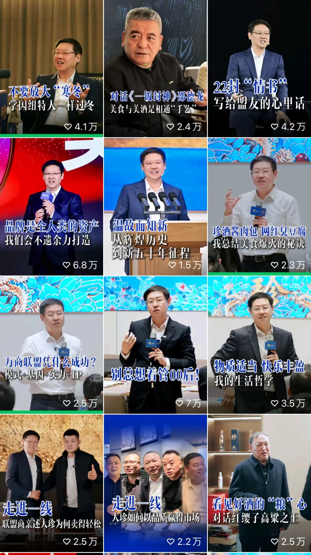 吴向东的视频号粉丝数并未公开,但其内容的流量更高。据“酒业家”报道,截至2025年末,吴向东视频号仅发布137条内容,总播放量已突破4亿,总点赞近160万,其中千万级播放视频13条,单条最高播放超过8000万。