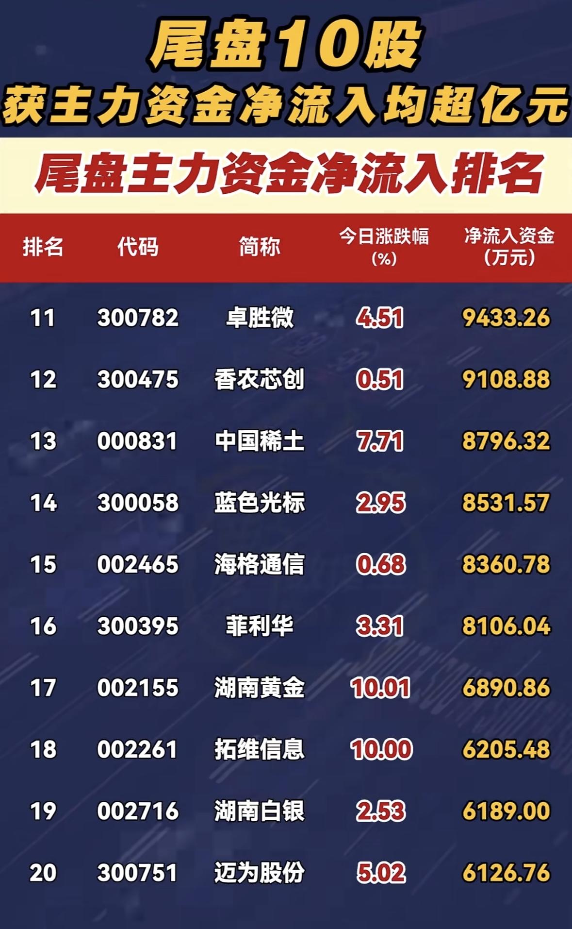 2月27日尾盘的股市很有看头,10股净流入榜里藏着主力资金的动向。就像打仗时将军的排兵布阵,主力资金的流向往往预示着市场的风向。 比如有的股票尾盘突然大量资金涌入,可能是主力提前得知了利好消息,准备第二天大干一场。而那些资金流出的股票,或许就暗藏风险。这就好比一场博弈,散户跟着主力资金走,说不定能分一杯羹,但要是跟错了,也可能被割韭菜。所以,多关注主力资金动向,对咱们股民来说,就像有了个指南针,能在这复杂的股市里少走点弯路。