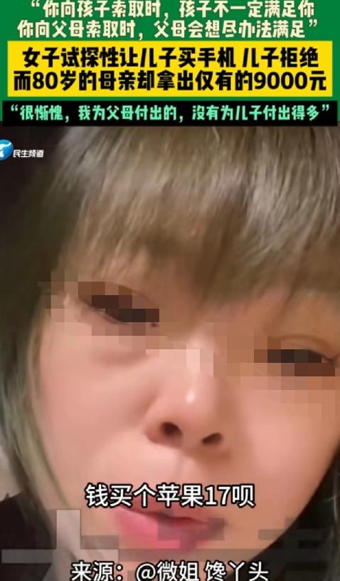 “可怜天下父母心!”吉林,女子收到儿子转的18000块钱,让她帮忙存起来,女子冒出一个想法,试探儿子问:我能拿这钱买个苹果17吗?儿子直摇头,拒绝道:不行,我好不容易攒的,下午,女子去80多岁的老母亲家,又试探说:妈,给我一万块钱,我想买手机,老母亲面露难色,说不太够啊,随后的做法却让女子瞬间泪目,感慨万千:你看这就是当孩子和当父母的区别! 同样是开口要一笔钱买手机,一边是自己掏心掏肺养大的儿子,一边是八十多岁、省吃俭用的老母亲,吉林一位大姐的一次无心试探,不仅让自己当场泪目,更刷爆了全网,道尽了中国式亲情最真实的模样。 今年四十多岁的李姐,是吉林本地一位普通中年妇女,平日里既要操持家务,又要惦记着儿子和老母亲。 这天一早,她的手机突然弹出一笔转账提示,是刚参加工作不久的儿子转来的18000块钱,附带一句简单的嘱托,让她帮忙存起来。 看着手机里的数字,李姐心里既有欣慰,又有一丝小小的失落。 欣慰的是儿子终于懂得攒钱、懂得托付,失落的是,自己手里用的还是儿子淘汰下来的旧手机,卡顿不说,屏幕都裂了一道缝,她忽然萌生了一个试探的念头,想看看在儿子心里,自己的需求到底占几分分量。 她没有直接开口要,只是旁敲侧击地提了句想换个新手机,能不能用这笔钱周转一下,没成想,儿子的反应格外坚决,满脸不舍地拒绝了,那股紧张劲儿,仿佛这笔钱是他的救命稻草。 李姐心里瞬间凉了半截,后来才知道,这笔钱是儿子起早贪黑送外卖,摔了三次才攒下的,是他规划未来的底气。 上午的试探让李姐心里堵得慌,午饭都没吃几口,索性换了衣服往娘家走,她的老母亲今年八十多岁,身子骨还算硬朗,一辈子省吃俭用,手里没多少闲钱,攒下的每一分钱,都是从牙缝里抠出来的养老钱。 坐下聊了几句家常,李姐又想起了上午的事,索性也试探了老母亲一句,说自己想买个手机,还差一万块钱,问问母亲能不能帮忙凑一凑,老母亲愣了一下,脸上露出了难色,小声念叨着自己手里的钱不太够。 李姐赶紧打圆场,说就是随口说说,让母亲别往心里去,可她话音刚落,老母亲就慢慢站起身,挪着小碎步走进里屋。 她从柜子最底层的旧布包里,一叠一叠地掏出皱巴巴的零钱,有一块、五块的,也有十块、二十的,都是些被摩挲得发亮的纸币。 老人数了半天,抬起布满皱纹的手,把凑好的9000块钱递到李姐手里,轻声说,就这些了,不够的话她再想办法。 看着那叠还带着母亲体温的零钱,再想起上午儿子的拒绝,李姐的眼泪瞬间就掉了下来,心里又酸又愧。 她忽然就懂了,这就是当孩子和当父母的区别,子女对父母的爱,往往带着权衡和保留,会先顾好自己的生活;而父母对子女的爱,从来都是毫无保留,哪怕自己再难,也总想拼尽全力帮衬。 这场试探,没有对错,却戳中了无数中年人的痛点——我们总把最好的留给孩子,却忘了回头看看,身后还有人把我们当成孩子疼。 此事传到网上后,引发了无数网友的共鸣,有人感慨母爱无私,有人体谅年轻人的不易。 其实不是儿子不孝,只是他还未体会为人父母的心境;也不是母亲有多富裕,只是在她眼里,女儿的需求永远比自己的养老更重要,愿我们都能读懂这份偏爱,别让父母的付出,只换来一声迟到的愧疚。