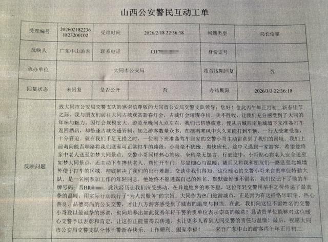 新春佳节,大同古城灯火璀璨,八方游客慕名而来。近日,大同市公安局交管支队收到了一封来自广东省中山市游客的感谢信,字里行间满是暖意,诉说着一个发生在古城寒夜的暖心故事