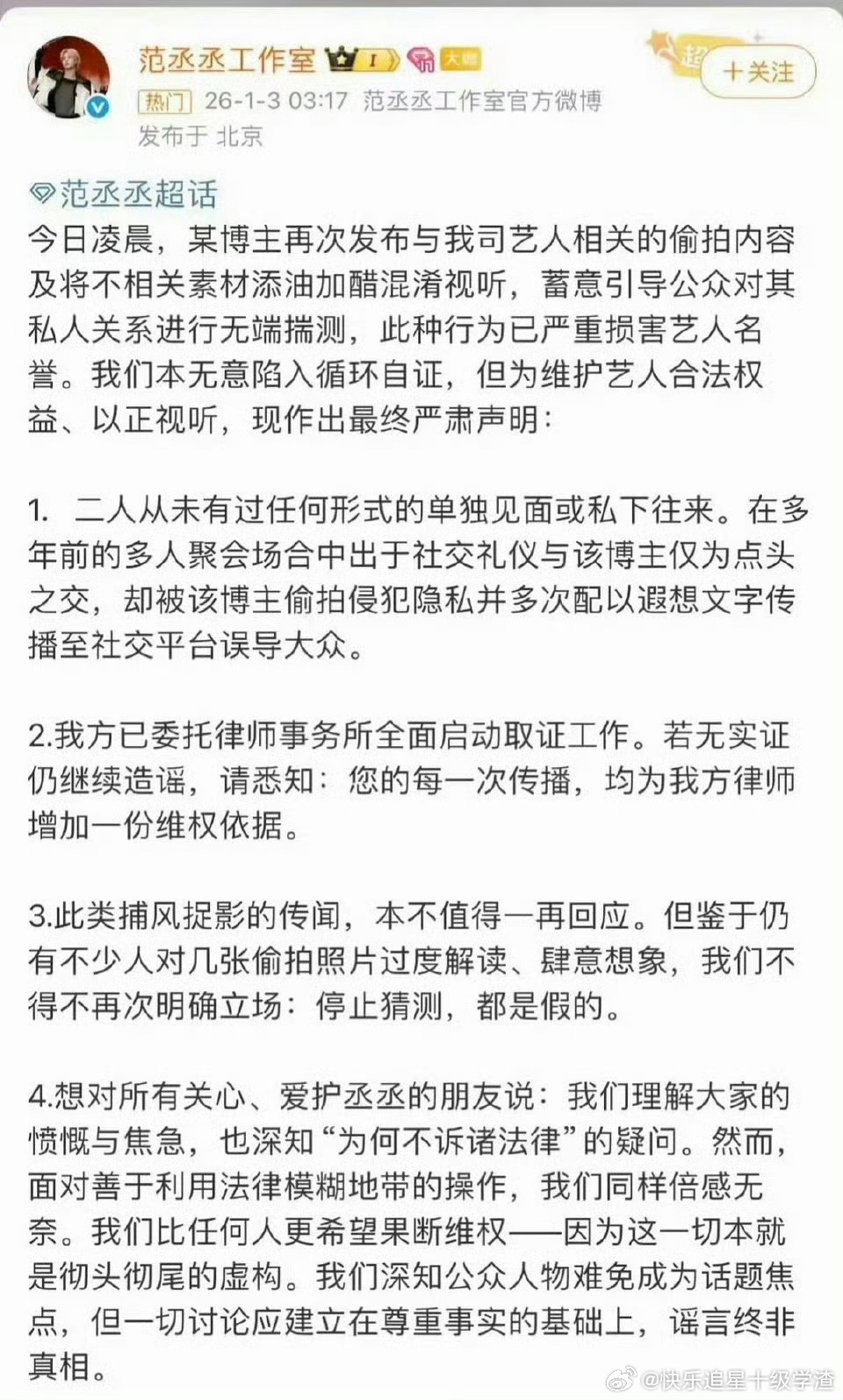 范丞丞开年已经辟谣三次了