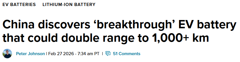 电动知家消息,2月27日,据多家媒体报道,中国科学家研发出一种锂金属电池,其在室温下的能量密度超过700Whkg,其续航里程超过1000公里(620英里),在低至-50°C(-58°F)的极寒温度下,电池仍保持了接近400Wh/kg的能量密度。这标志着电动汽车高能量电池生产领域取得了重大进展。相关研究成果于北京时间2月26日在线发表于国际顶级学术期刊《自然》上。