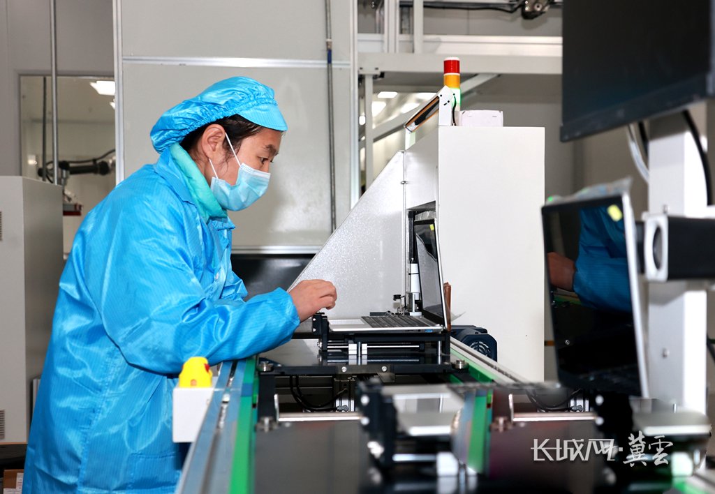格瑞邦公司员工对即将下线的笔记本电脑进行测试。长城网·冀云客户端记者袁立朋摄