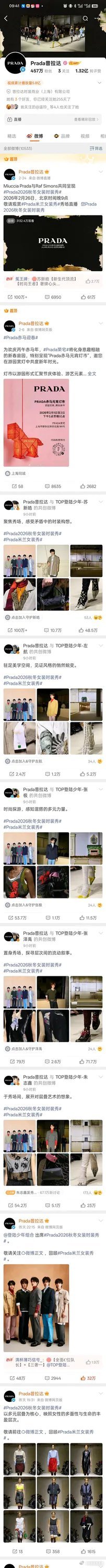 很奇怪哦,prada官博在秀后没有认领杨幂看秀,反而没有title的top登陆少年都被认领了。