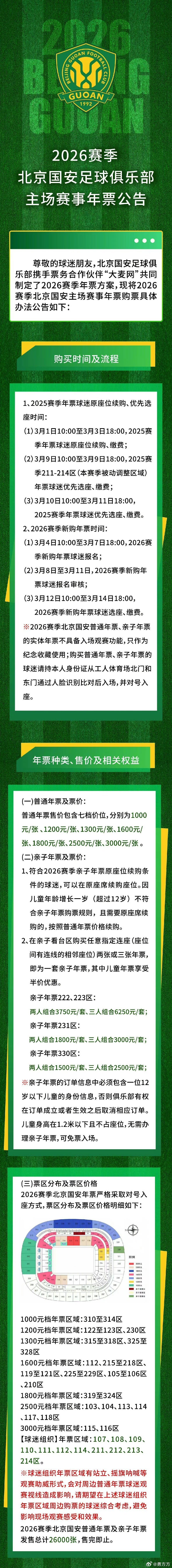 北京国安 年票公告来了!终于可以买下我自己的连续第20张年票!