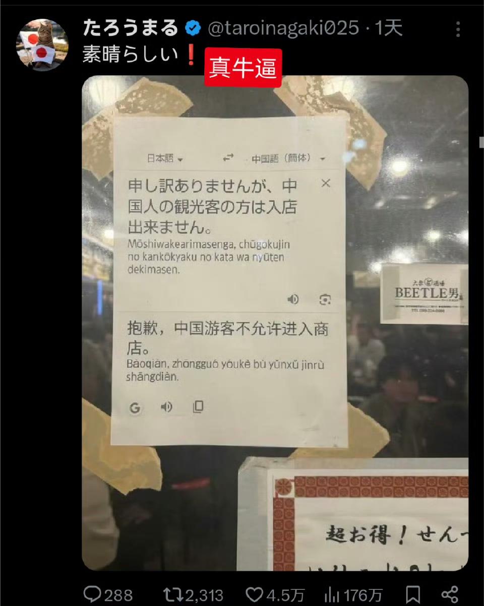 日本一家店铺贴出“中国游客不准入内”的告示,网上点赞量超4万,还有日本人明确表态支持,由此可见日本人的仇华态度。一直以来,日本人都不服中国,他们觉得若没有美国,中国根本无法在二战中取胜。然而,他们却惧怕美国,毕竟美国曾将其打服。这就如同训狗,不听话时揍一顿便老实了。