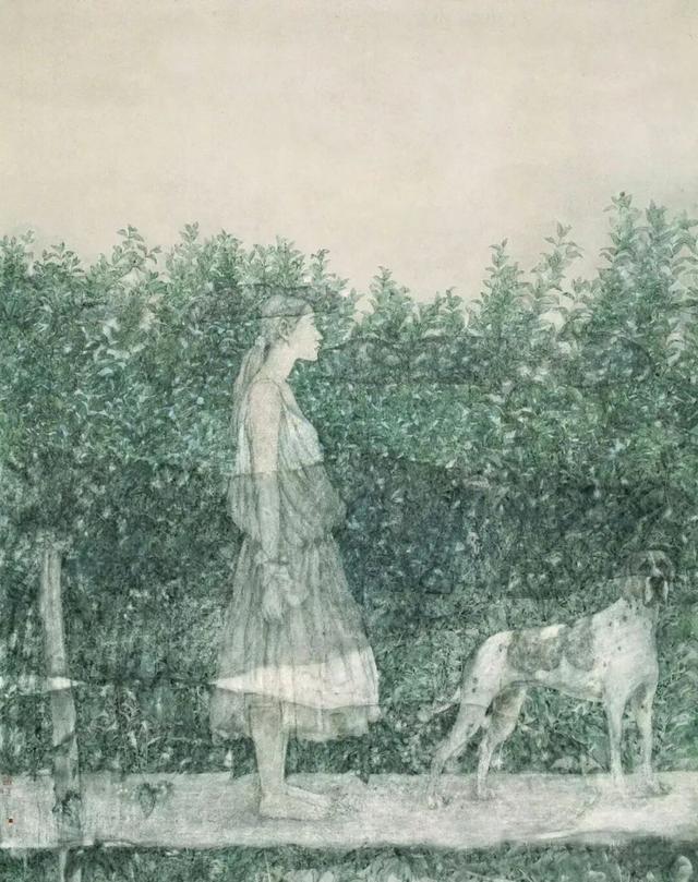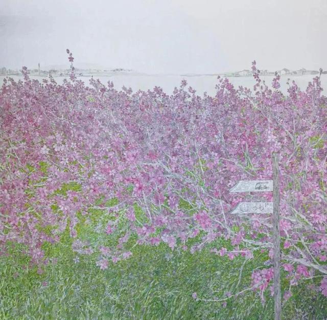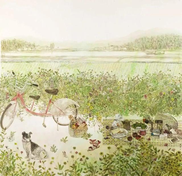 2006年,作品《故乡的路》让鲍莺在画坛崭露头角,也标志着其个人绘画面貌正式确立。这幅作品跳出传统山水画的宏大叙事,聚焦乡间归途的一隅景致:驻足的少女、斑驳的道路、摇曳的野花与张望的家犬,交织成一段温柔的故乡记忆。画面以细腻笔触传递真挚情感,令观者产生心灵共鸣。此后近二十年间,鲍莺的创作从清透朦胧,走向写意之境,艺术思想愈发成熟,风格也独树一帜。