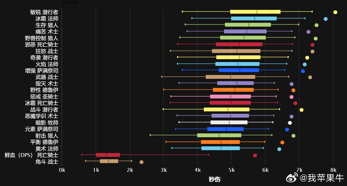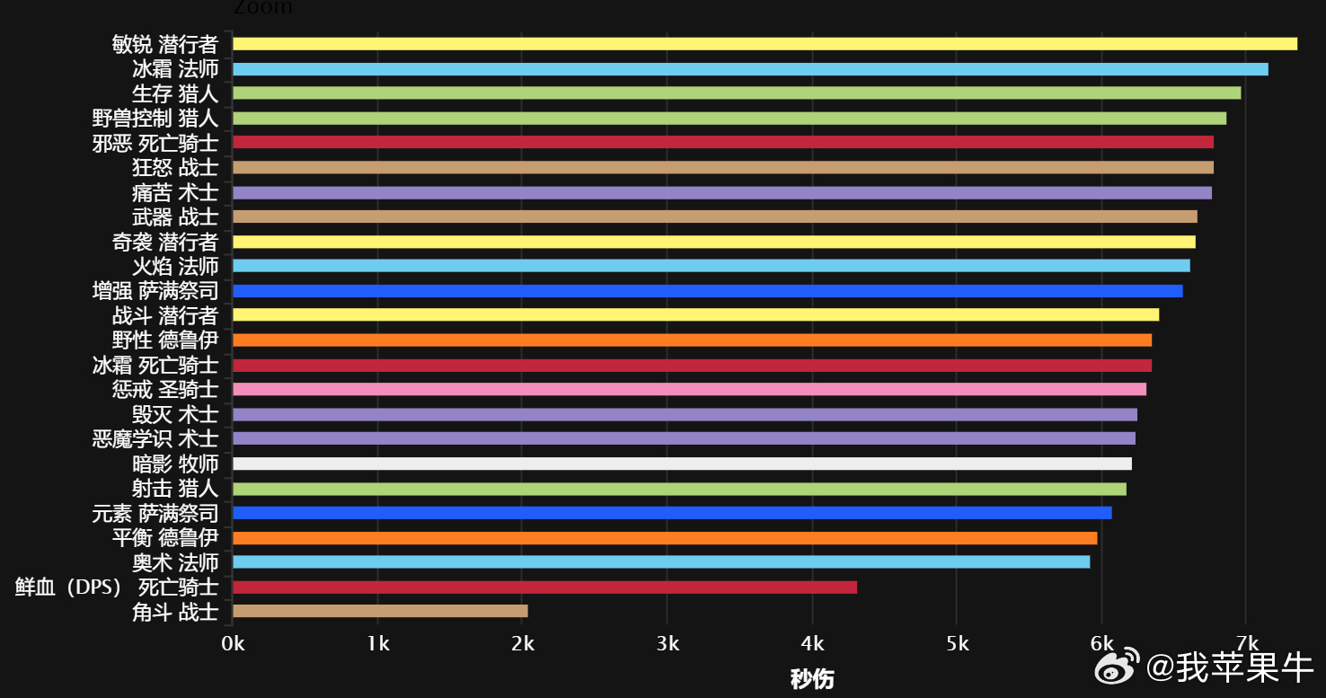 魔兽时光服最新DPS排名,唯一神级职业诞生!图1是全职业的排名情况(括号代表改天